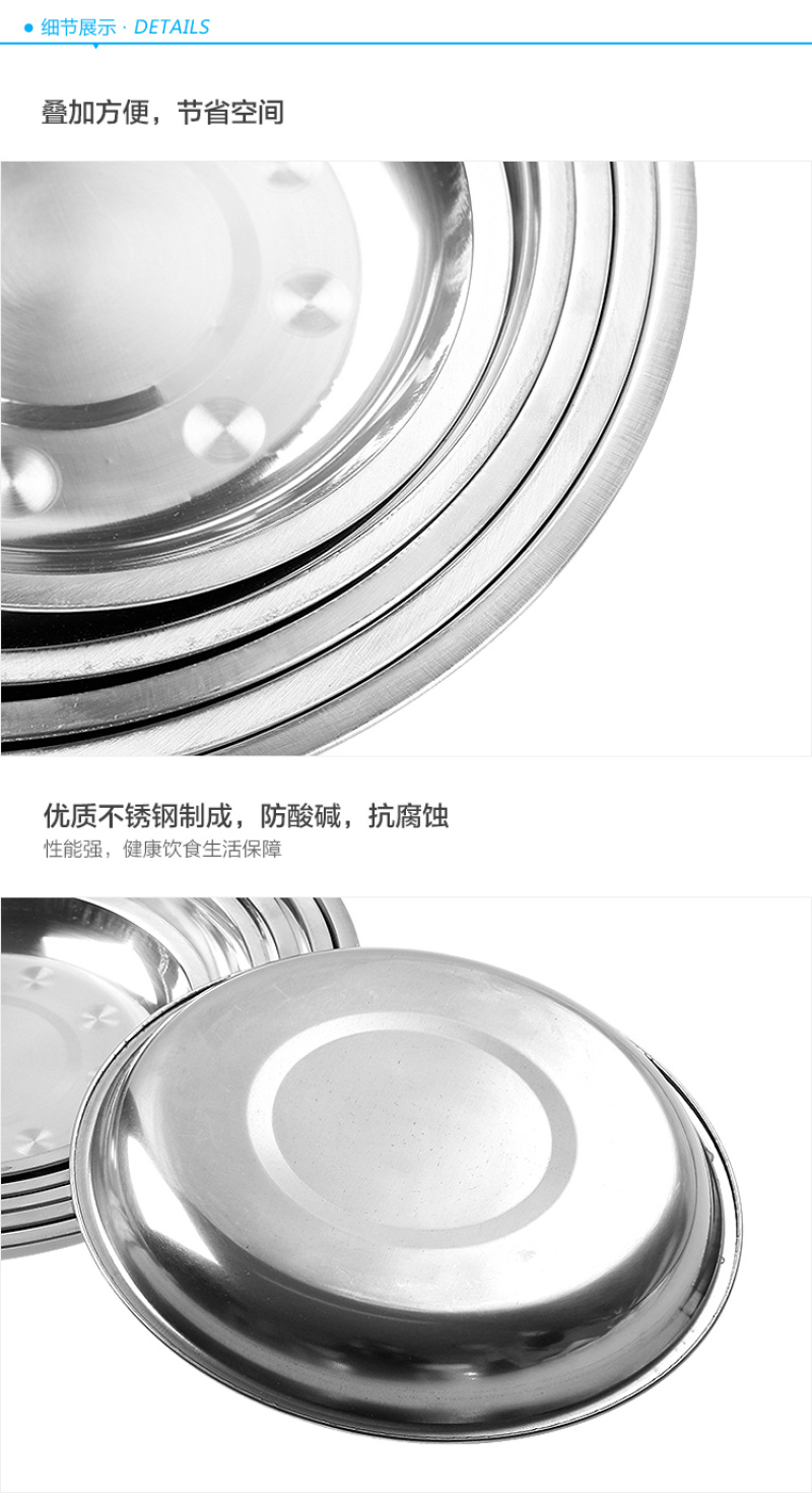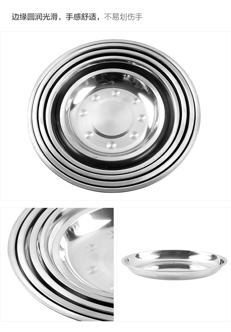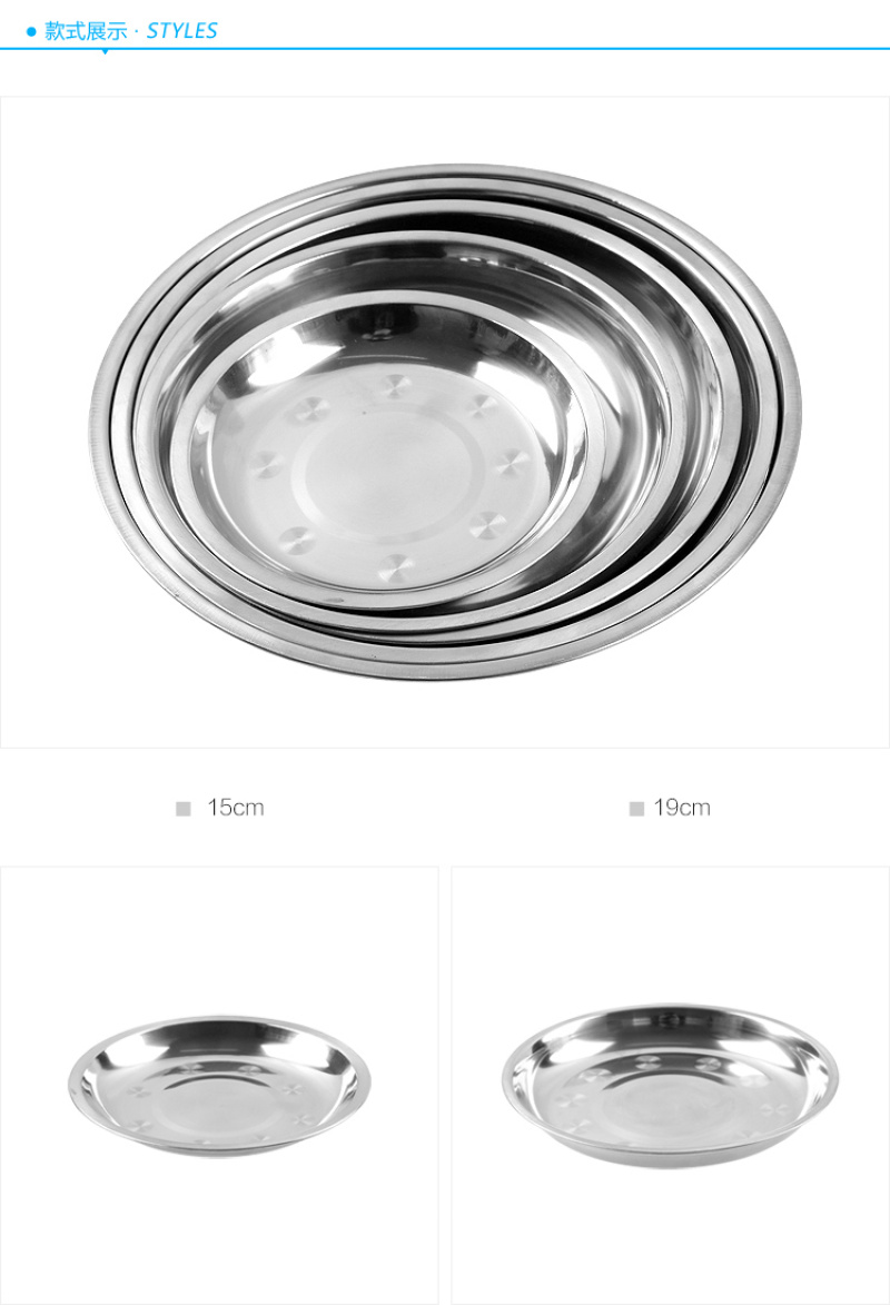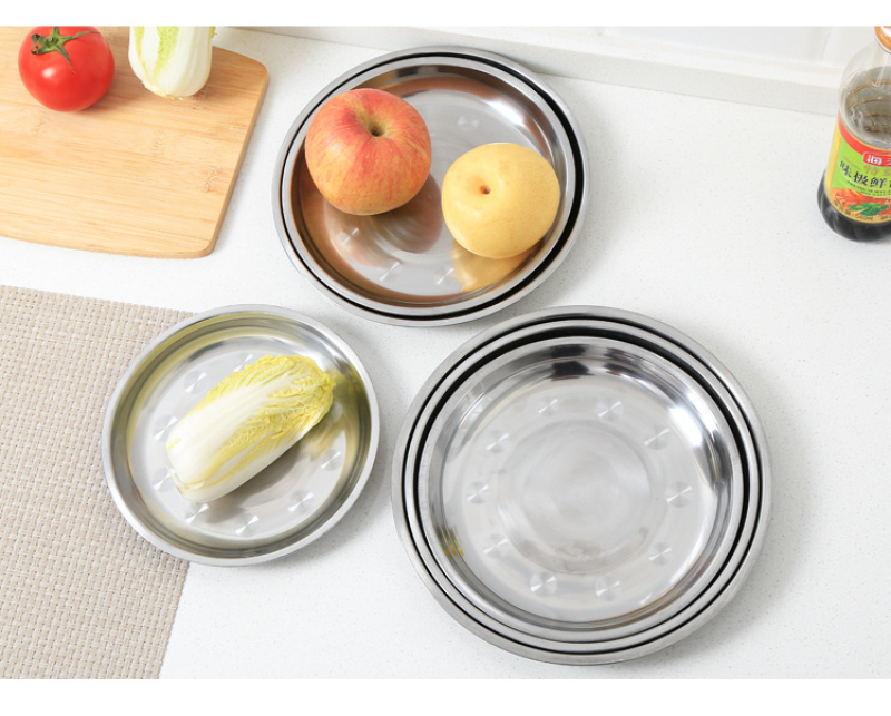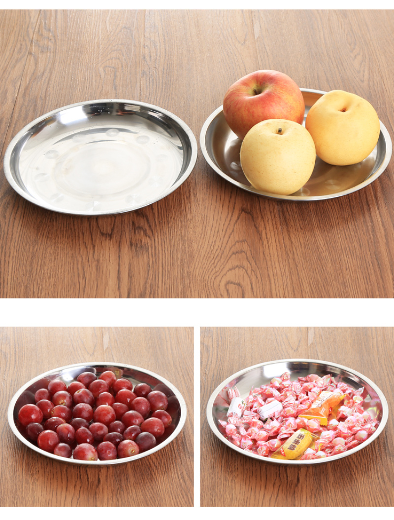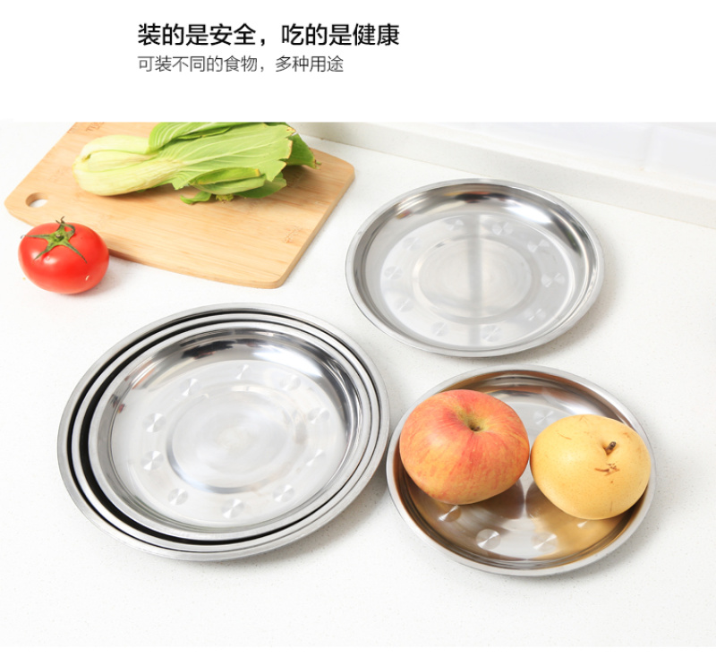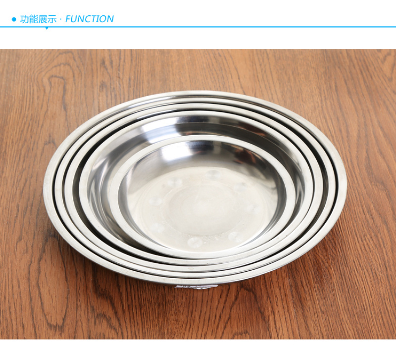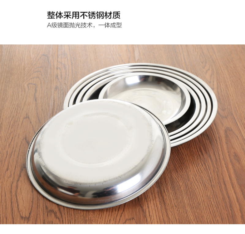 creative household stainless steel plate thickened disc barbecue rice noodles flat plate dish dish cold skin fast tableware tray
