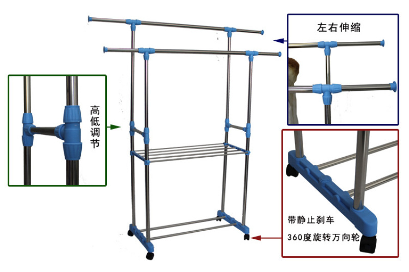 Product name: stainless steel double pole plus layer drying rack