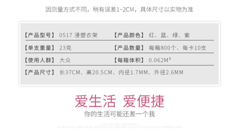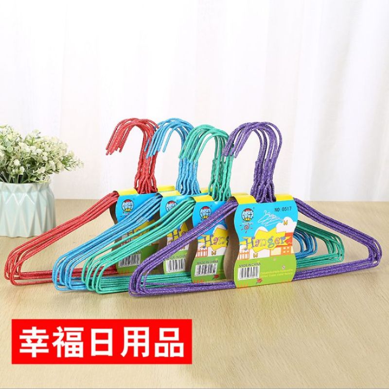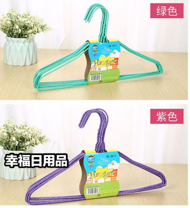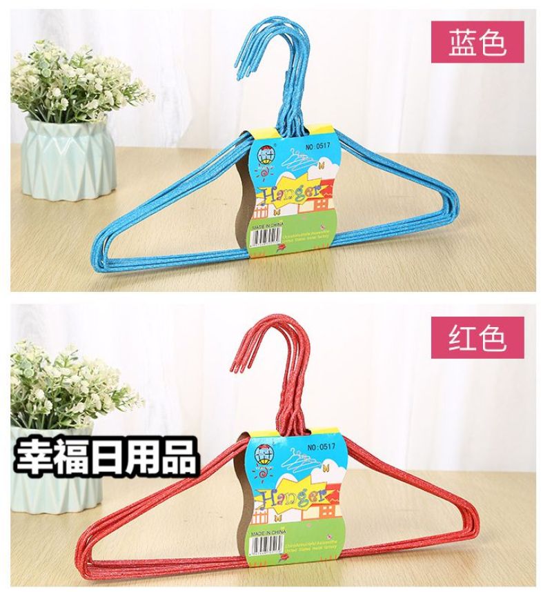 1; Stall hot sell environmental protection anti - skid color dip plastic hangers, household simple thick thickening non - trace drying hangers, drying hangers, iron hangers.