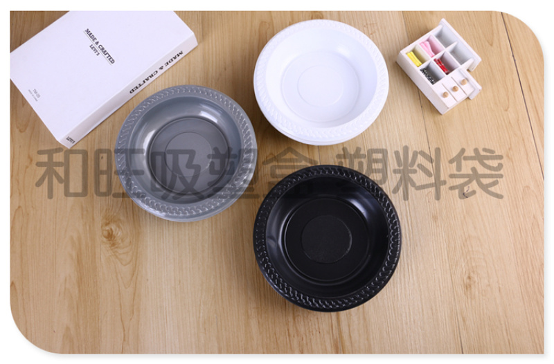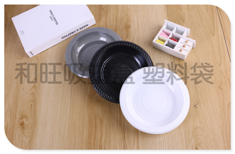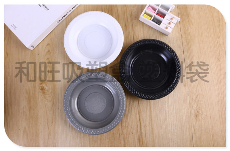 Product Name: Black, White, and Gray Three-Color Disposable Plastic Dinnerware Disposable Round Plastic Plates Manufacturer Direct Sale in Stock
