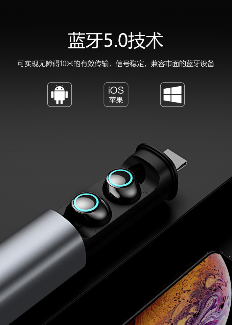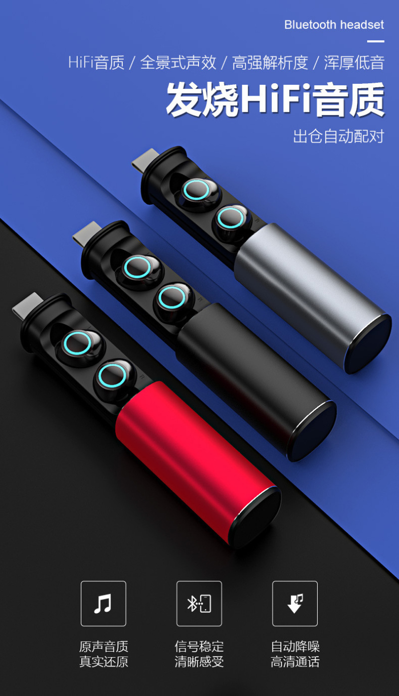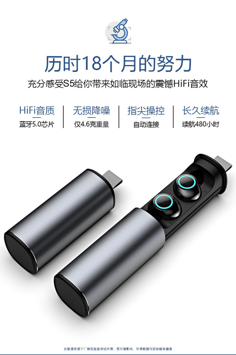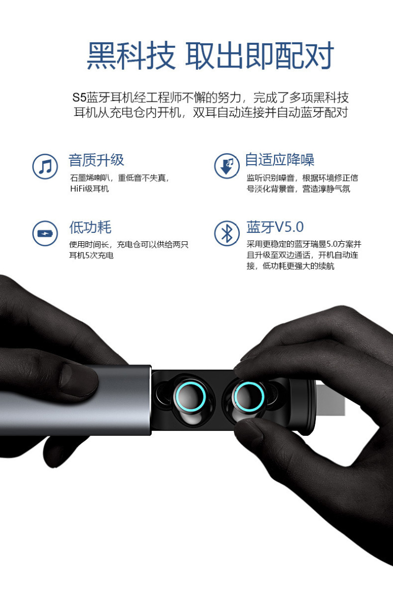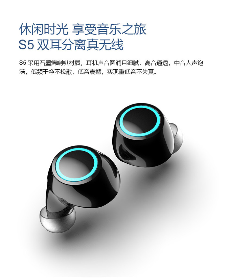 s5 wireless 5.0 bluetooth headset binaural mini driving sports in-ear waterproof with charging compartment