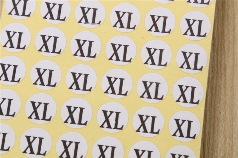 factory direct sales round white background black digital size label adhesive sticker, clothing shoes label manufacturer