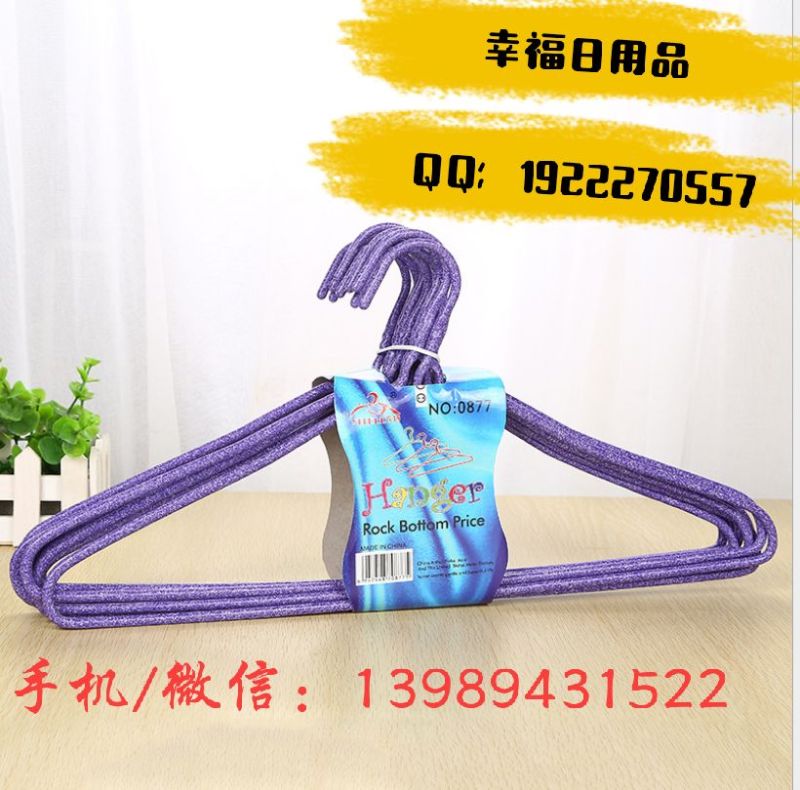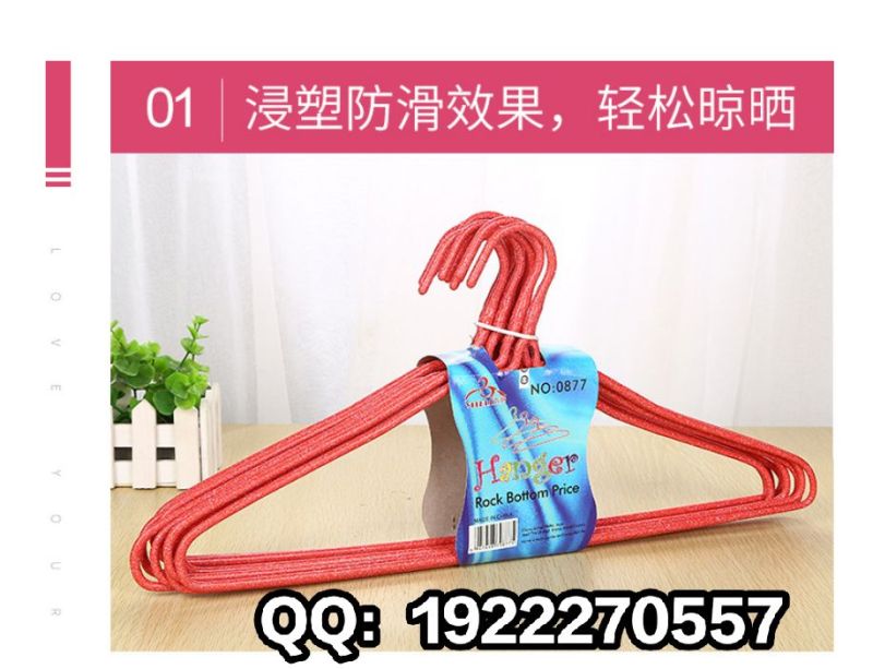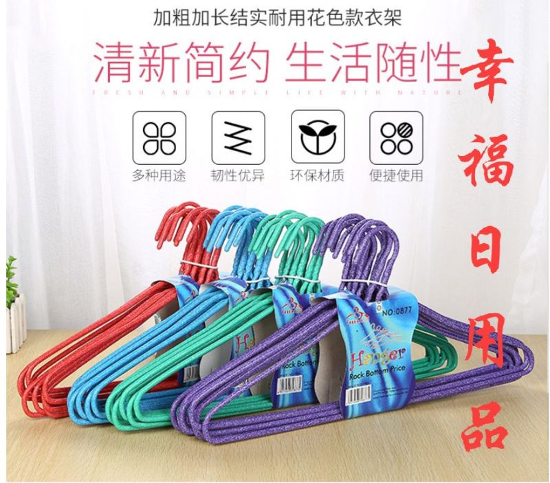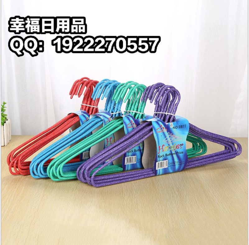 1; Stall hot sell environmental protection anti - skid color dip plastic hangers, household simple thick thickening non - trace drying hangers, drying hangers, iron hangers.