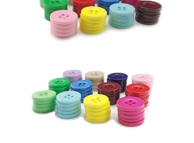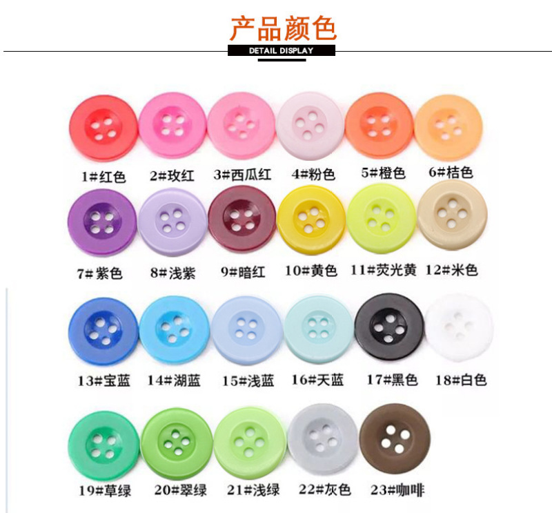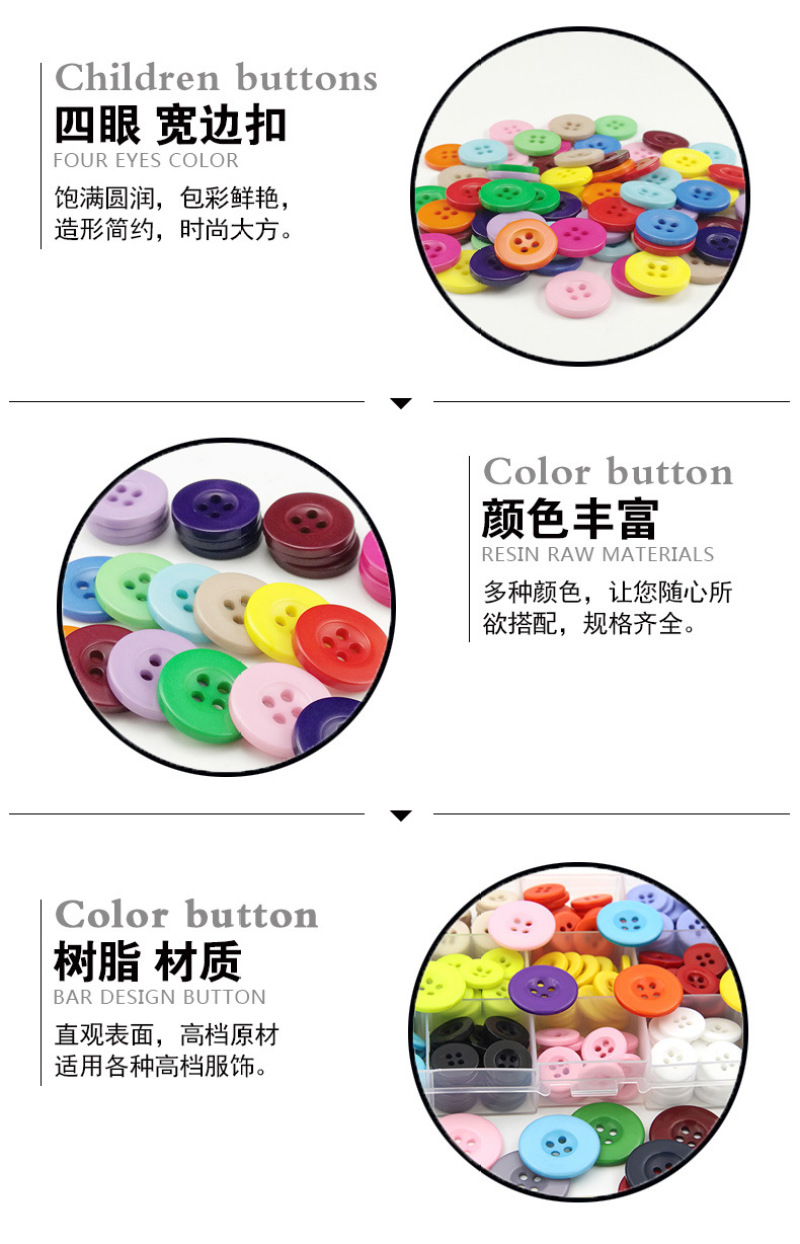 White raw wide-edge four-eye buttons 【Material】: Resin?? 【Shape】: Round?? 【Color】: Available in multiple colors for custom orders?? 【Specifications】: 10mm/11.5mm/13mm/15mm/18mm/20mm/23mm/25mm
