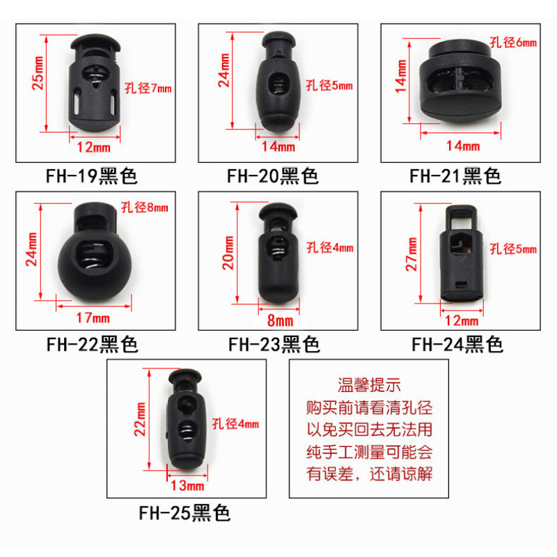 nylon button plastic buckle spring button black elastic bell rope adjustment elastic button pig nose buckle