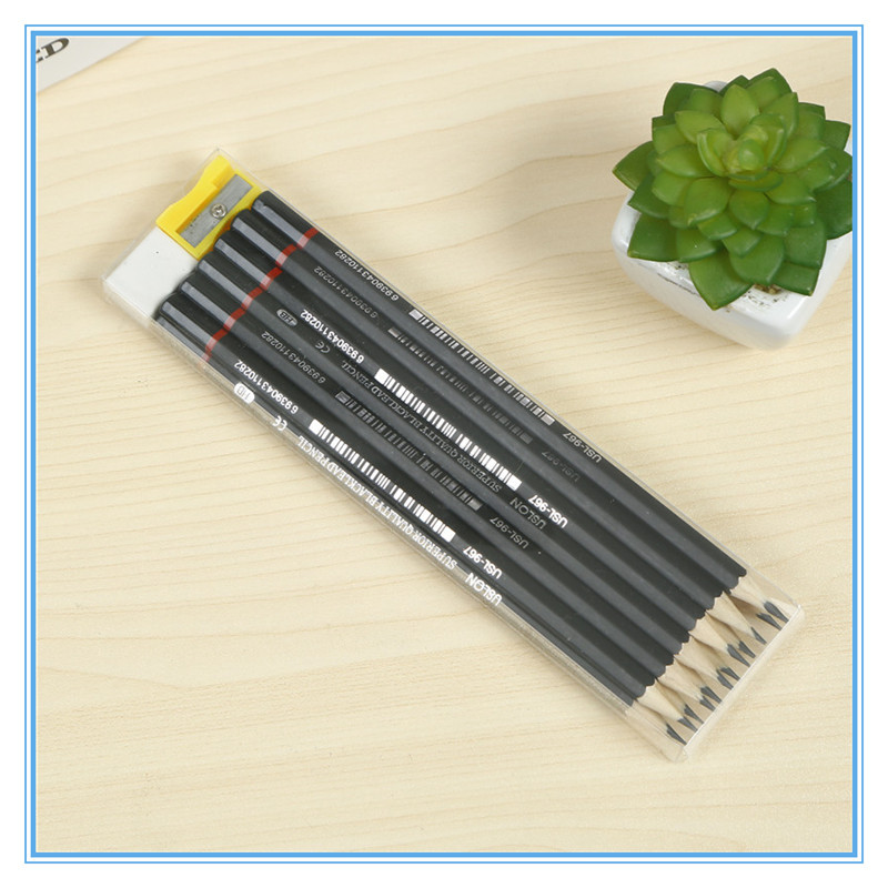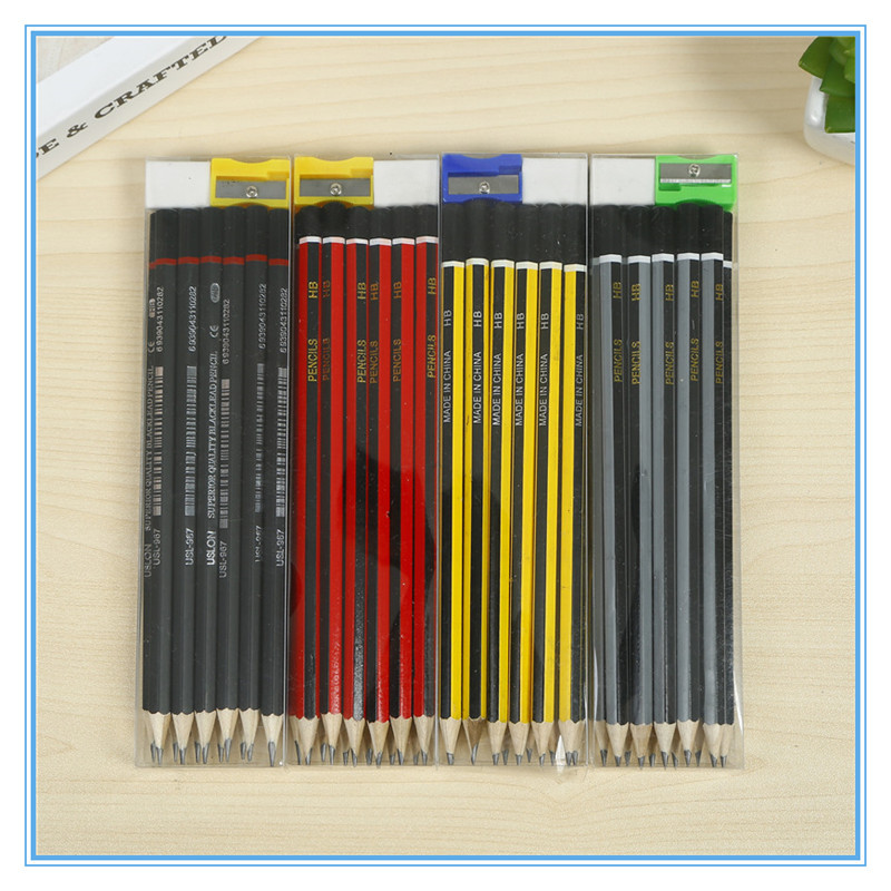 Log Six Angle Rod HB Children's Pencil Set Student Studying Stationery Pencil Eraser Pencil Sharpener Set
