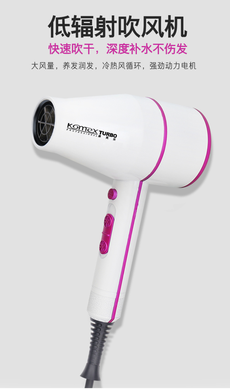 • Product name: Komex professional hair salon hair dryer with a power of 2400W hot and cold wind barber's household hair dryer genuine hair salon recommended gray