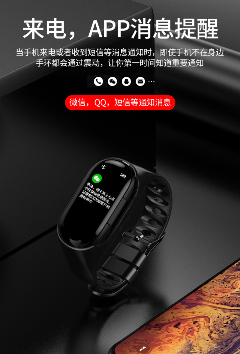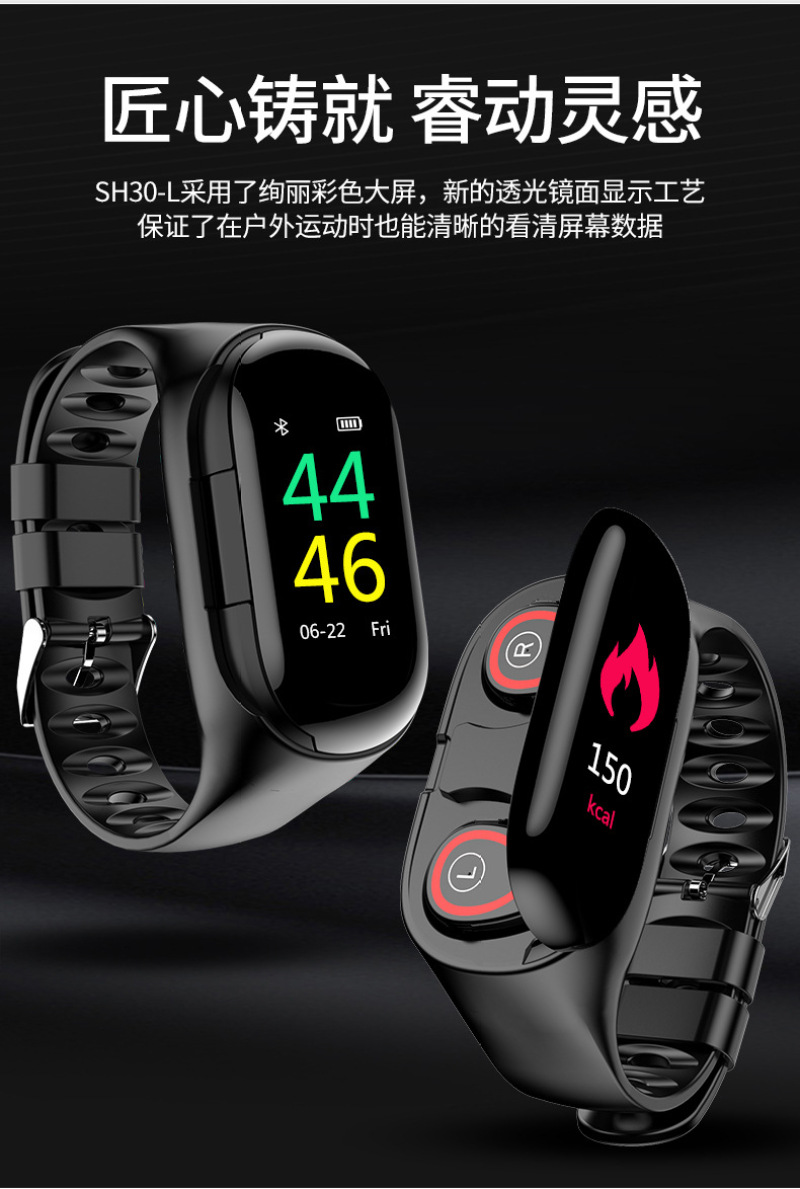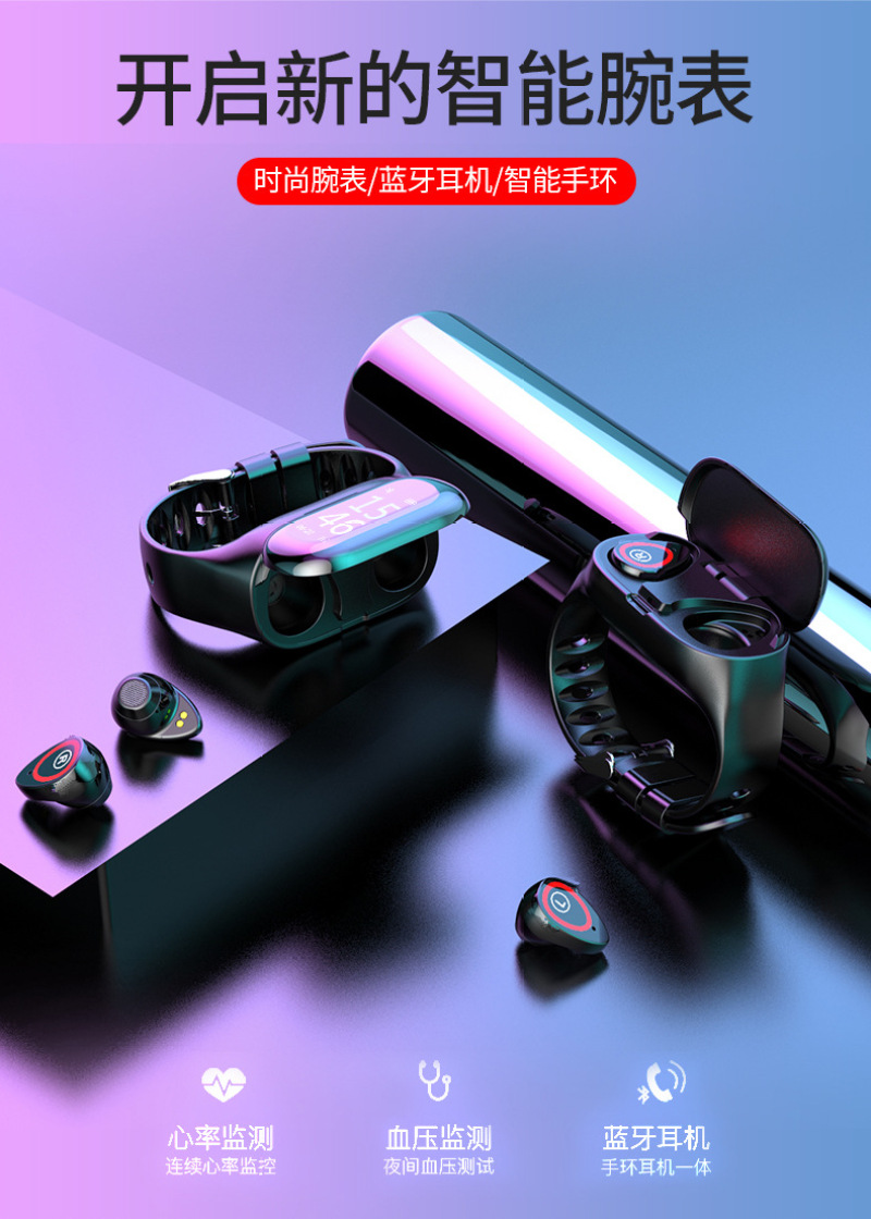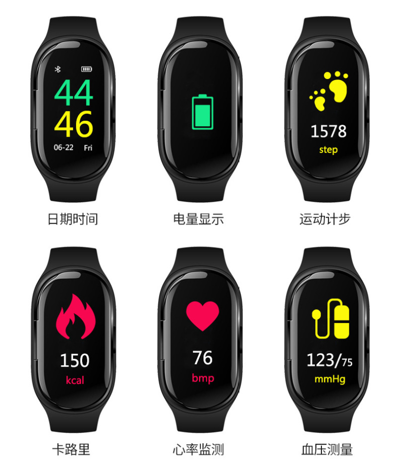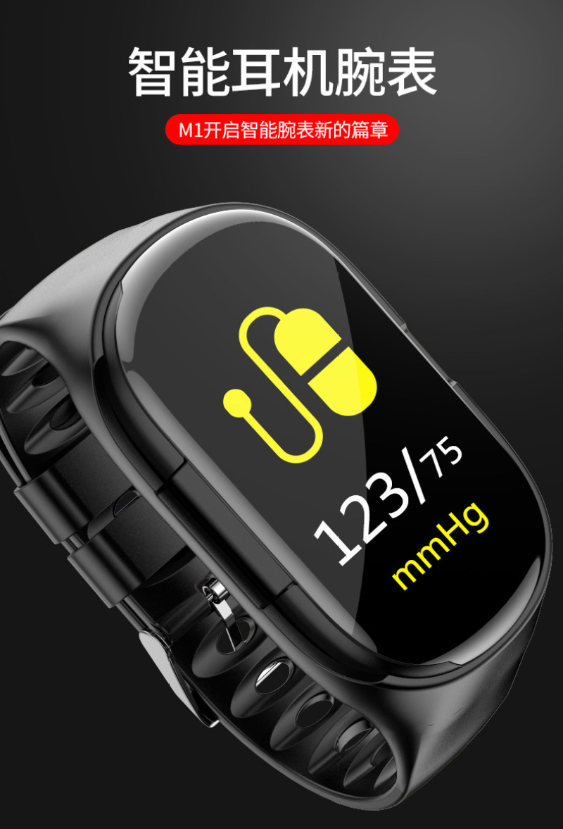 m1 ear-to-ear smart bracelet color screen wireless bluetooth 5.0 headset two-in-one step counting heart rate blood pressure monitoring exercise