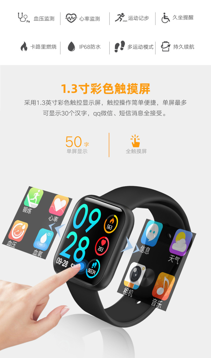 new p80 smart bluetooth sports bracelet full touch screen heart rate blood pressure sleep monitoring smart information reminder
