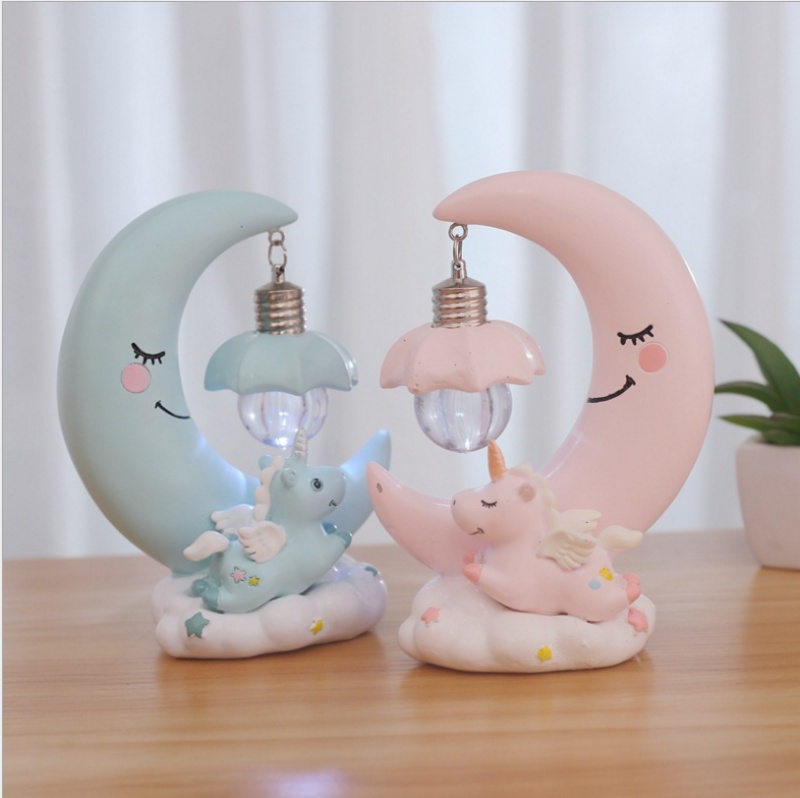 ins style girl heart unicorn small night lamp creative home cake ornaments resin crafts