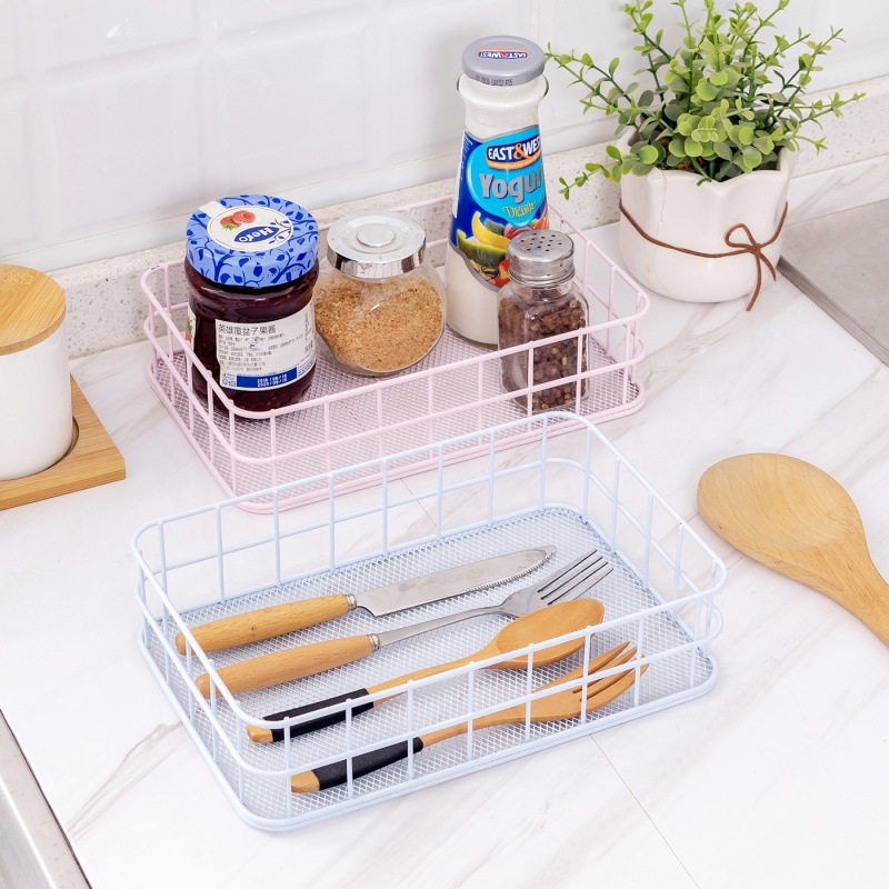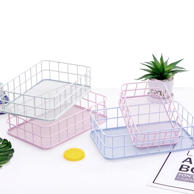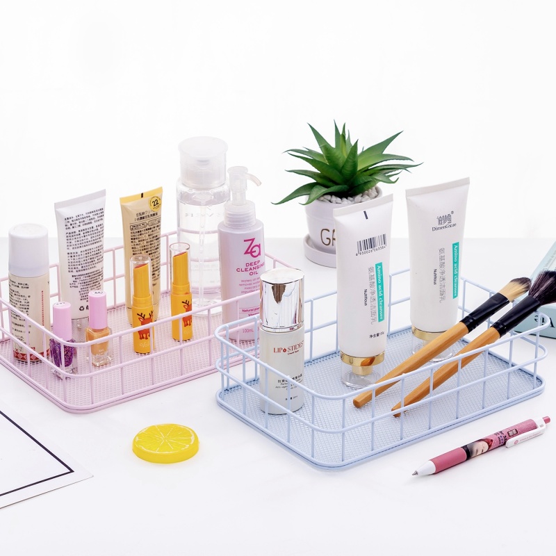 Factory Direct Sale: Spray Paint Iron Art Cosmetic Storage Box, Desk Office Storage Basket, Small Jewelry Storage Frame