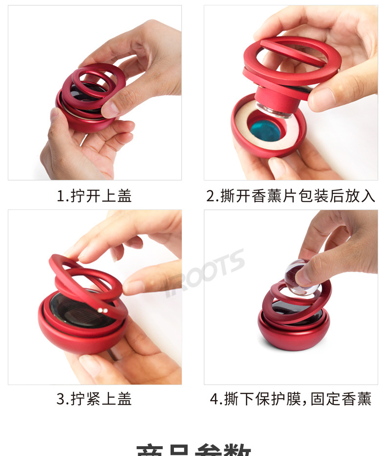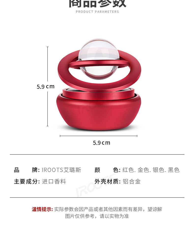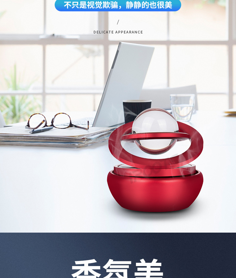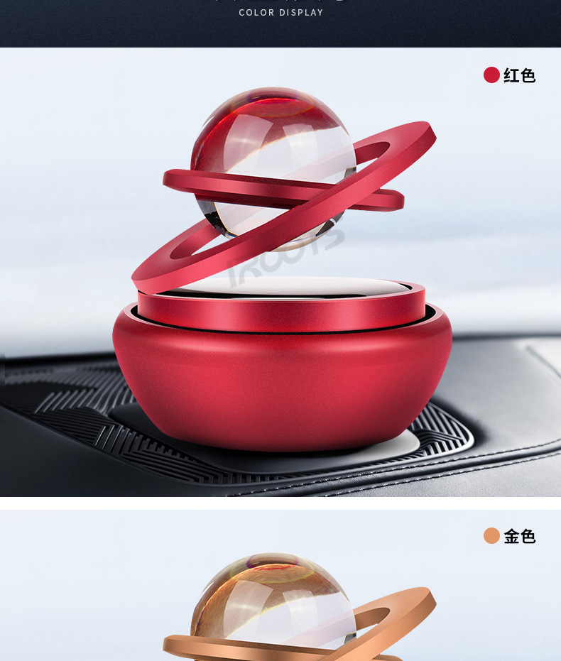 Car Perfume Holder Star Crystal Double Ring Suspension Rotating Car Aromatherapy Solar Self-Rotating Car Aromatherapy