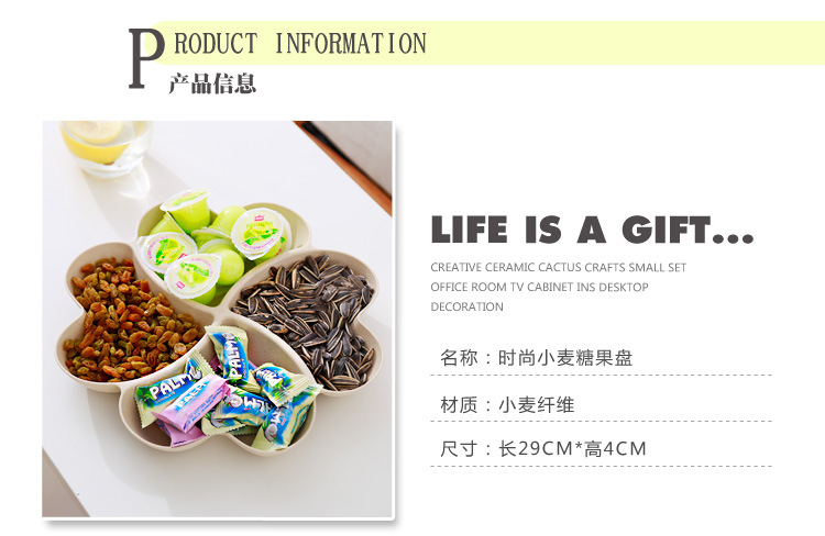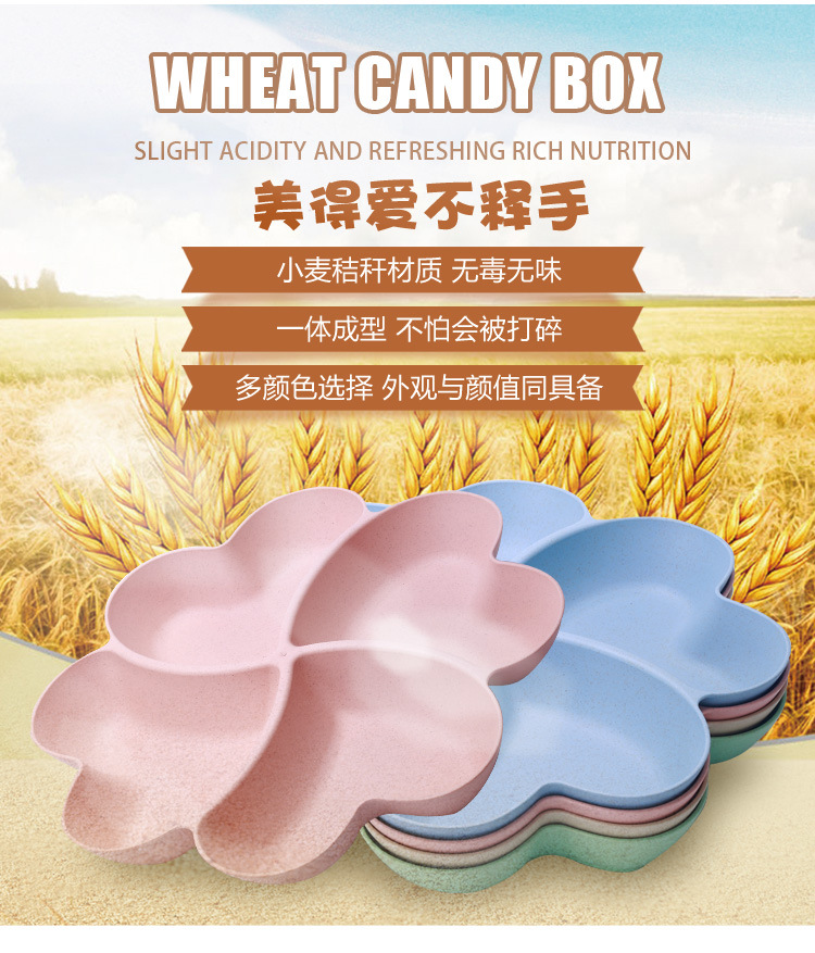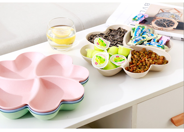wheat fun wheat straw creative home heart-shaped dried fruit tray european fruit plate grid candy plate gift customization