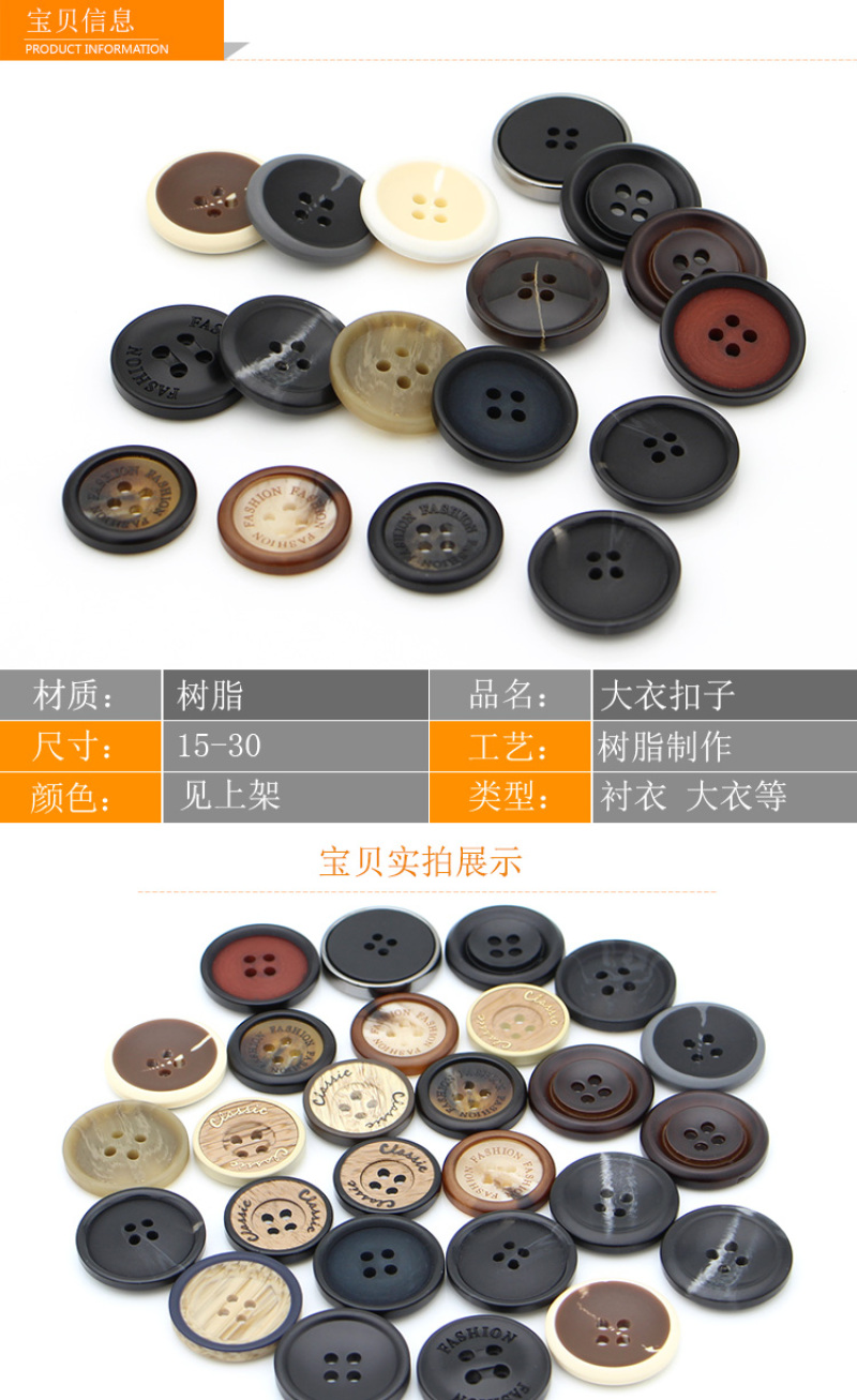 round resin sweater coat coat buckle trench coat button men's suit suit pants four-eye button