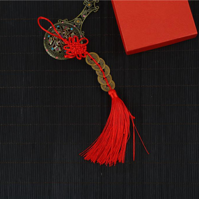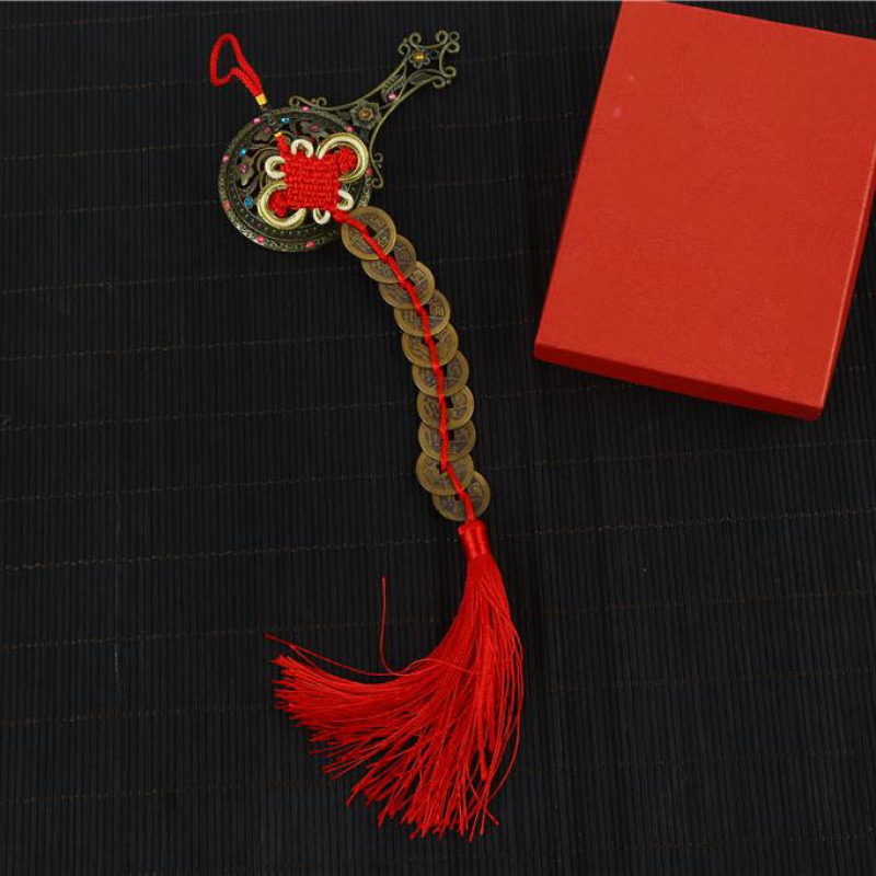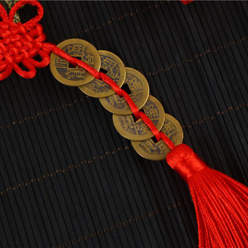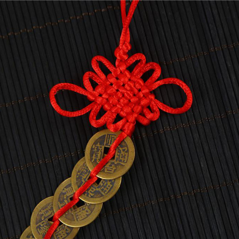 hot sale cartoon genuine pure copper five emperor coins copper coin automobile hanging ornament red rope chinese knot car accessories gift pendant