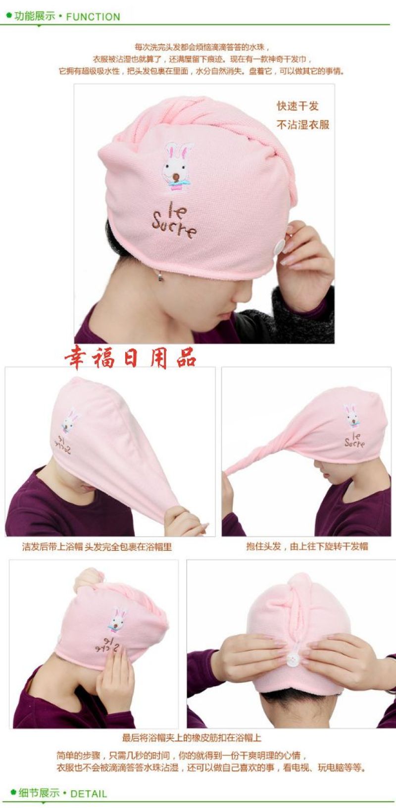 Cute cartoon rabbit super absorbent dry hair cap magic dry hair towel, ultra-fine fiber. Denier only half of the ordinary with super water absorption ~
