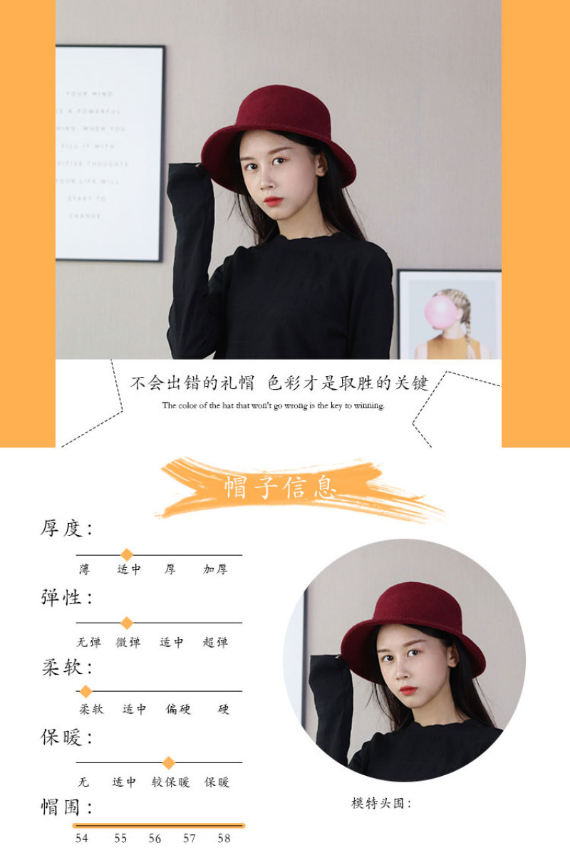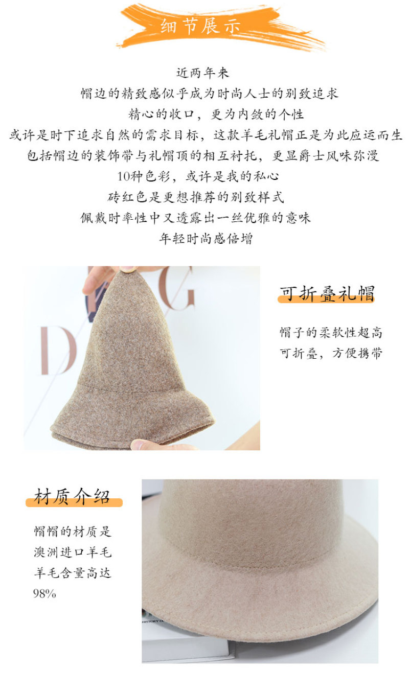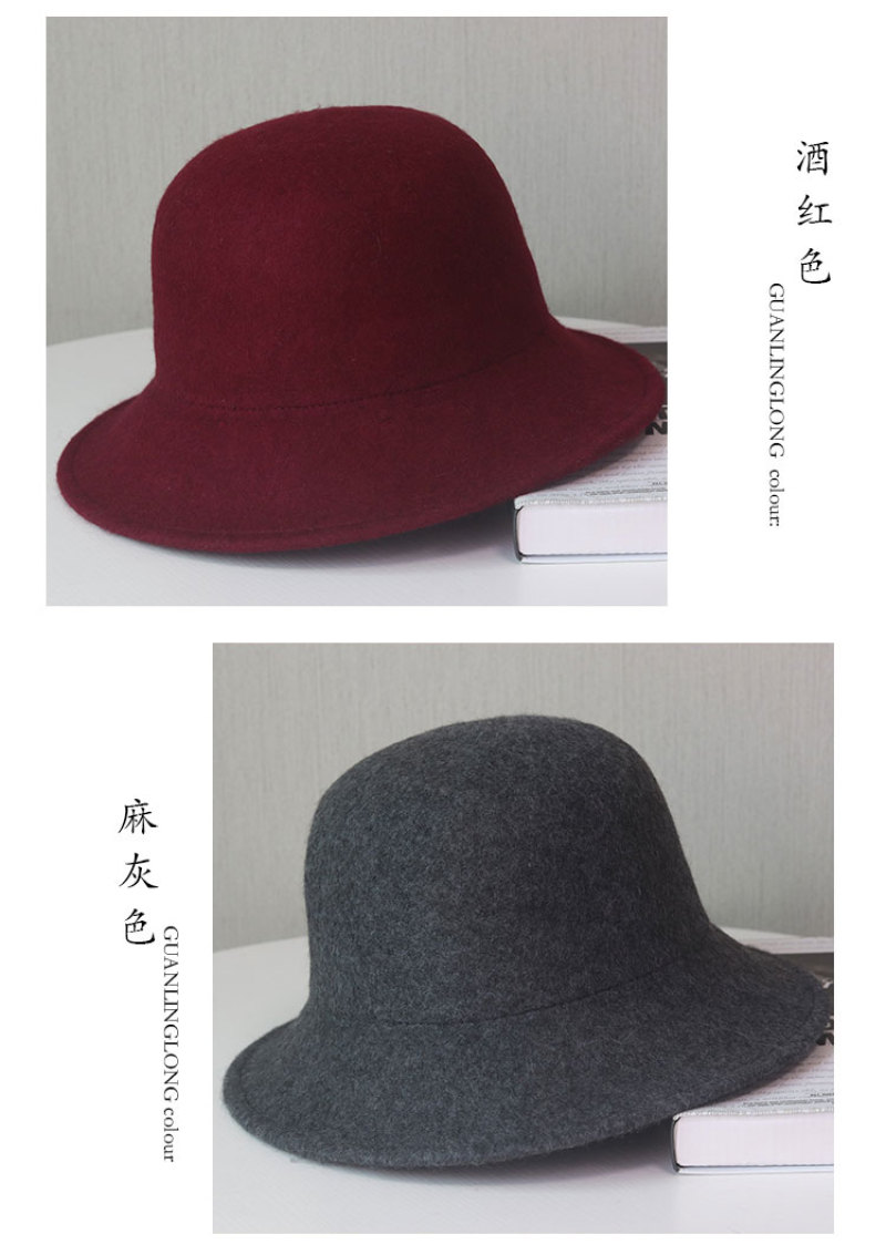 Autumn Winter wool hat female Vintage British and American solid color felt hat Han version of versatile casual wool Jazz hat