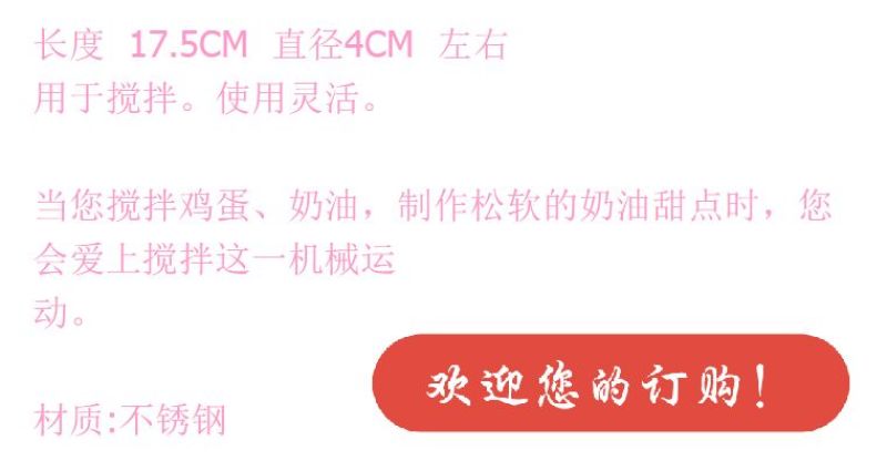 When you whip eggs, cream, and make fluffy cream desserts, you will love the mechanical motion of stirring. Material stainless steel.