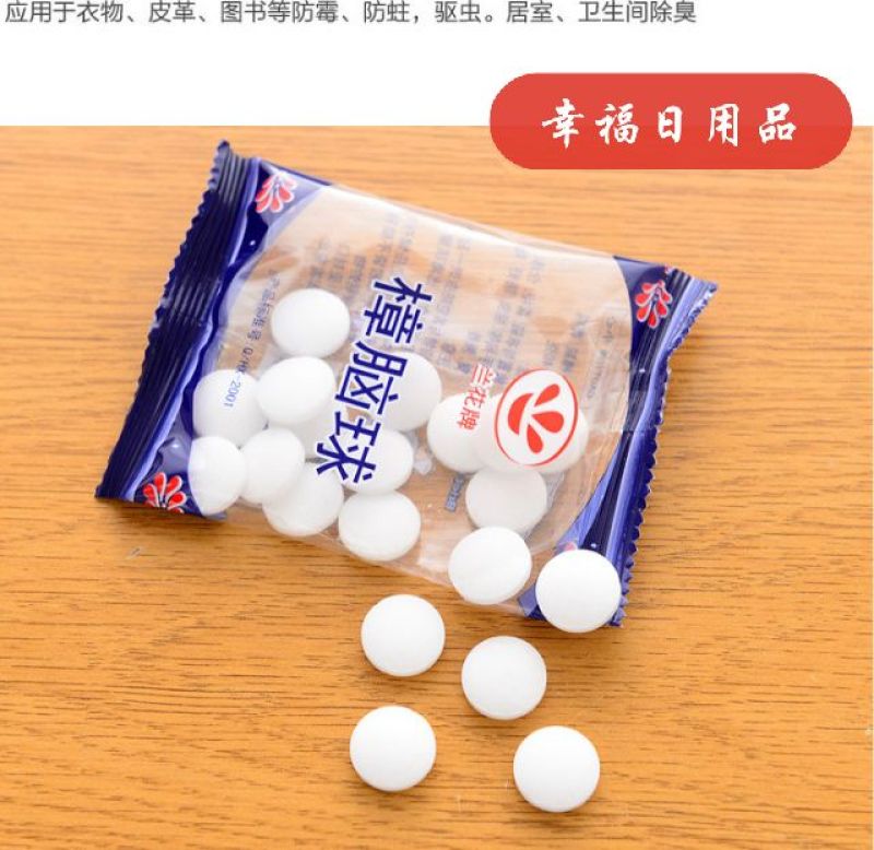 Mothballs are suitable for storing cotton, wool, chemical fiber and other clothes, leather goods, books, documents and warehouse storage items against moth, protective effect on clothes and storage items, and toilet deodorization.