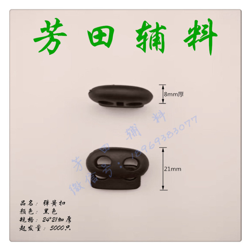 【Product Model】: Mine Spring Clasp Thickened Version 【Product Size】: 24*21*8 【Product Material】: Plastic, Nylon 【Product Color】: Black, White, Other colors can be custom-made according to customer's requirements. |