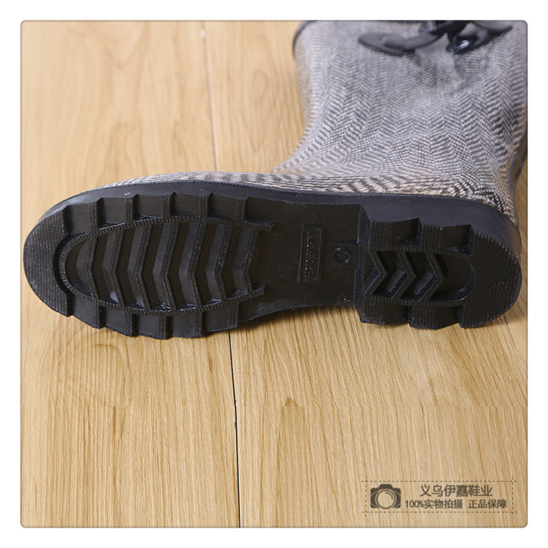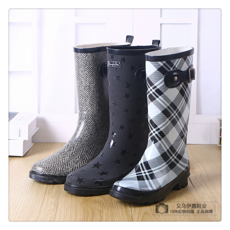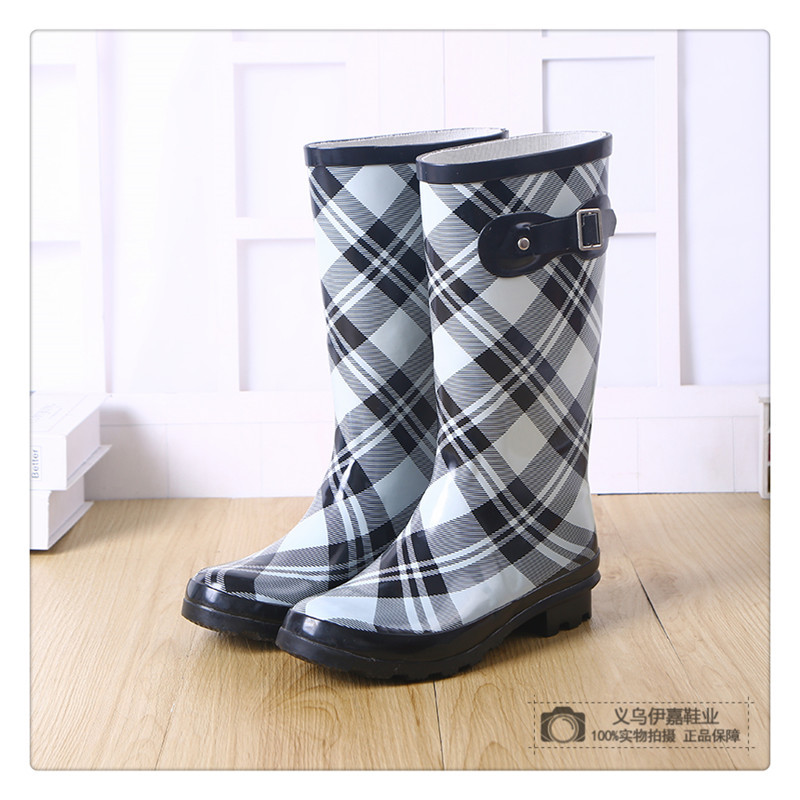 hemu rain new fashion plaid adult rain boots mid-high tube rain boots women waterproof shoes rubber shoes non-slip