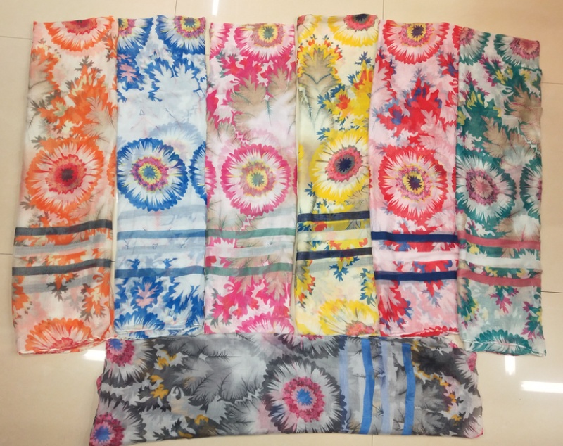 Product Name: Horizontal Striped SunflowerPrinted pattern fashion Bali yarn scarf - Color and style diversity