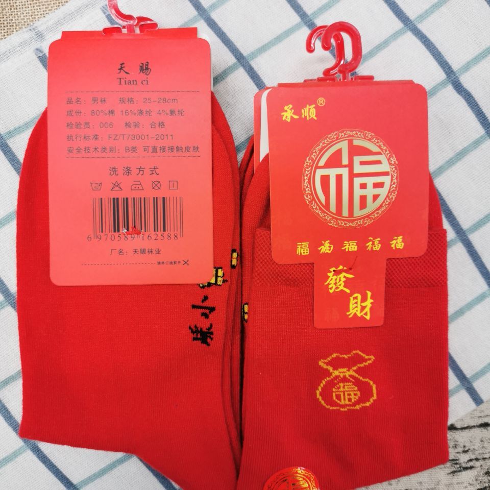 Big red fortune-blessing socks for marriage, male and female couple socks, and male socks with big red steps on the evil.