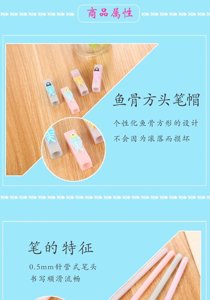 Korean Silicone Cartoon Gel Pen New Fishbone Student Pen Signature Pen Test Pen Learning Stationery