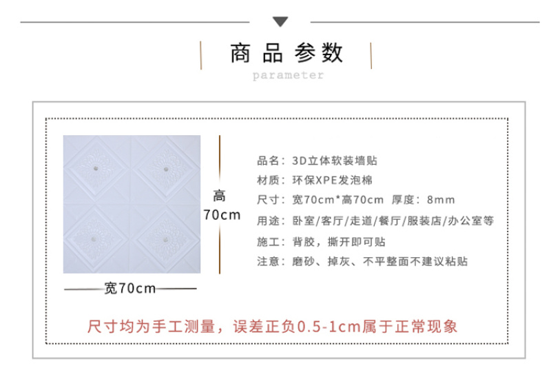 Home Decoration Warm Style Background Wall 3D Self-Adhesive 70cmx70cm Color Pattern