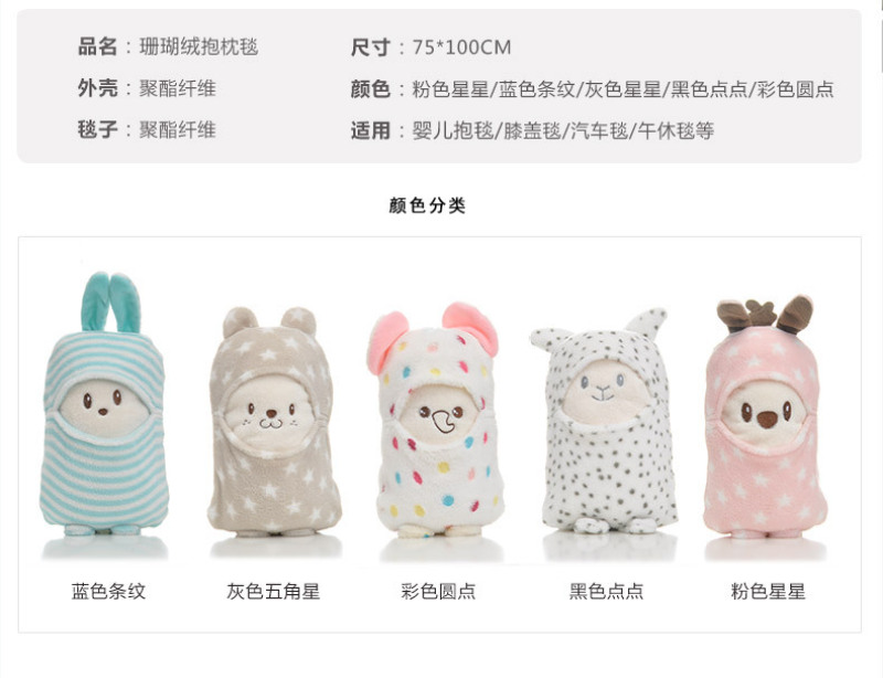 children's coral fleece pillow and blanket cartoon two-in-one hug blanket dual-use office nap casual blanket i car cover blanket
