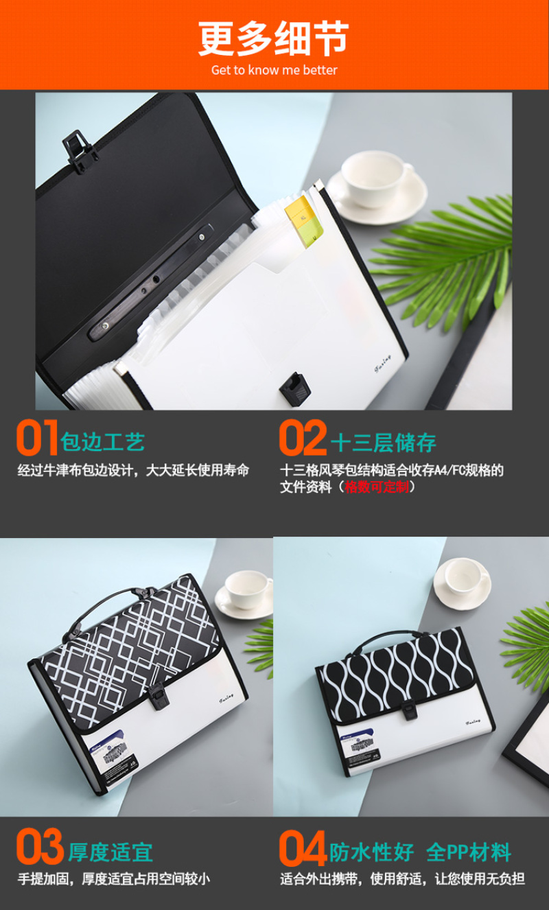 customizable 13-grid plastic file box portable organ bag a4 multi-layer folder printing logo