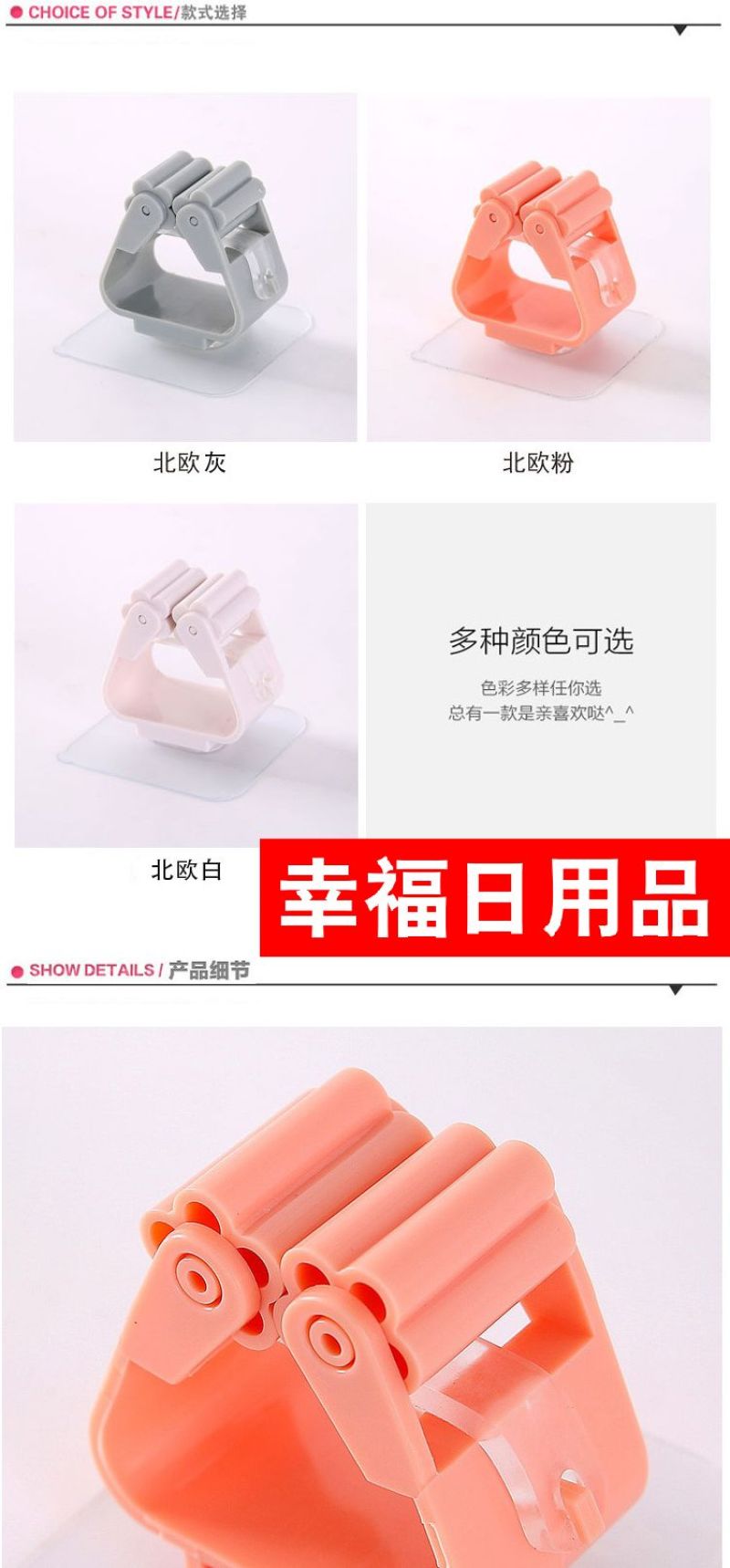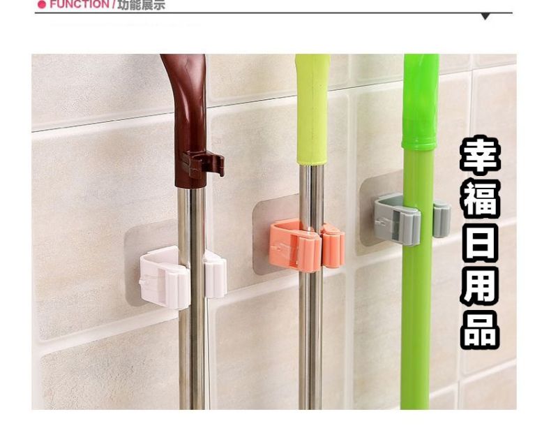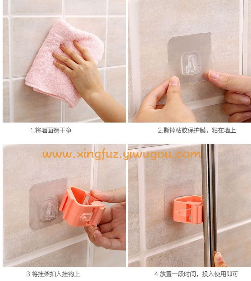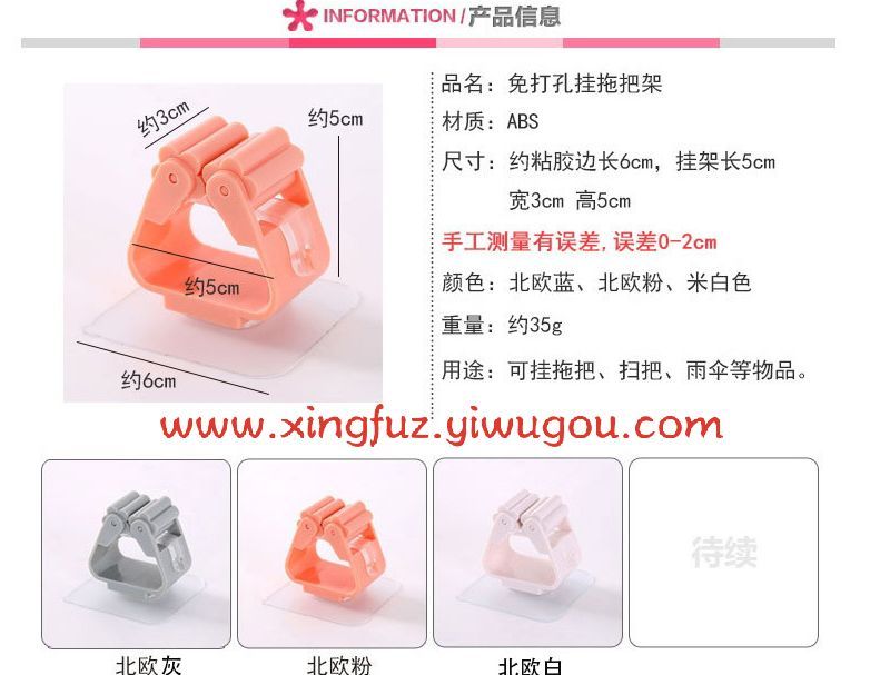 Material of no-punching hanging mop rack: ABS about adhesive side length 6cm, hanger length 5cm, width 3cm, height 5cm, manual measurement error, error 0-2cm color: Nordic blue, Nordic powder, rice white weight: about 35g about 6cm Use: can hang mop, broom. Simple design, elegant and generous.