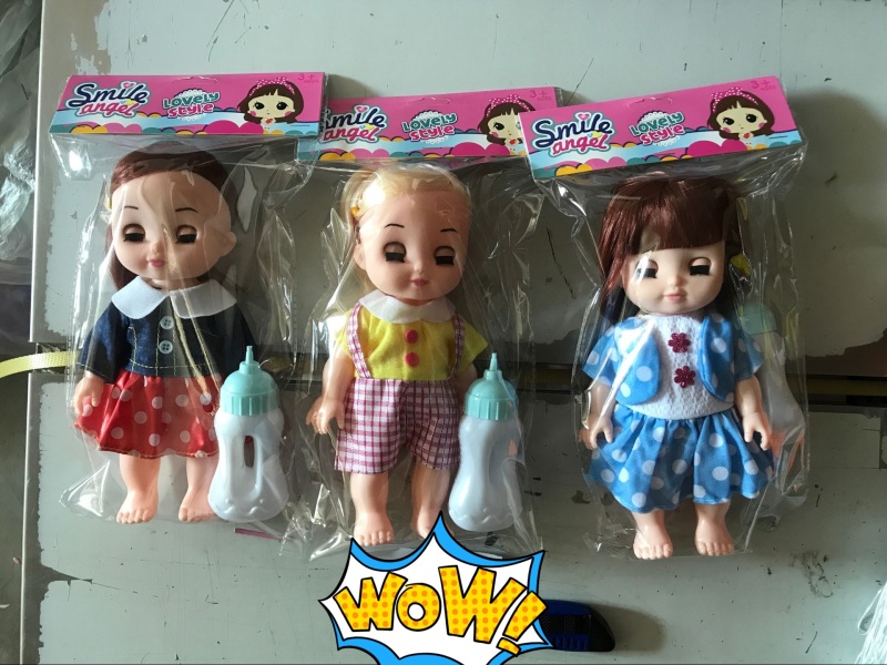 Cute doll with music, accessory bottle, blinks, mixed dress and hair style, PVC card headbag packaging