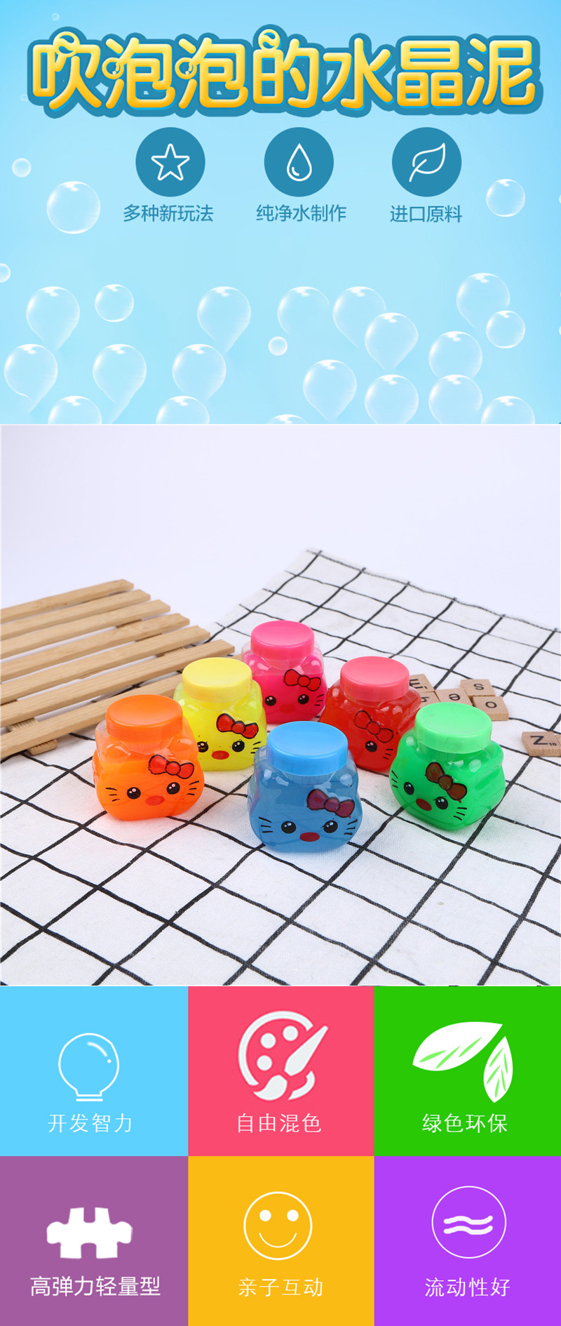 crystal mud transparent safe non-toxic rubber colored clay baby girls' toy plasticine foaming glue