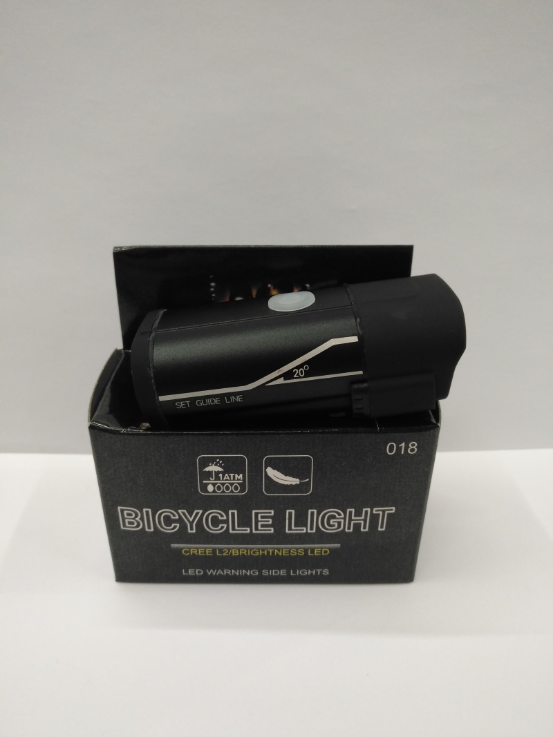 New USB charging bike headlight, ABS material 13 watt strong light beads, 3 gear position strong light and weak light flash, built-in rechargeable battery equipped with a USB charging cable, black color, single color box with transparent plastic shell packaging, 120PCS per box, this is a dual-use bike lighting lamp.