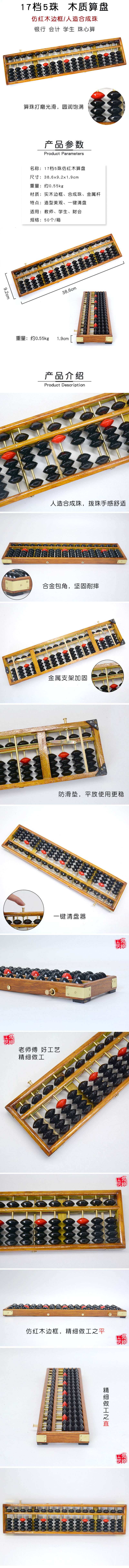 Financial Accounting Abacus Student 17 Grade 5 Beads Imitation Rosewood Solid Wood Frame Non-Slip Abacus one-Click Liquidation Three-Finger Peak
