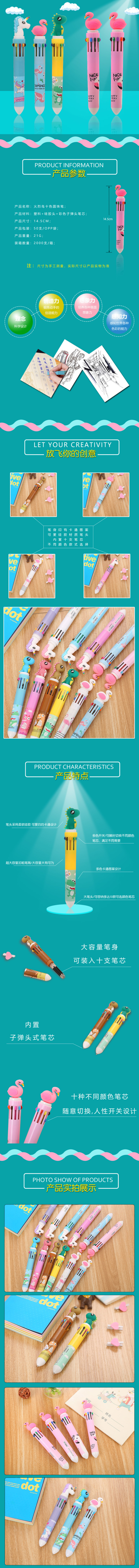 | Product Name: Fire-Faced Flamingo, Unicorn, Rabbit, Dinosaur Ten-Color Ballpoint Pens | |