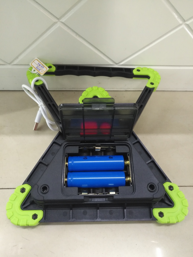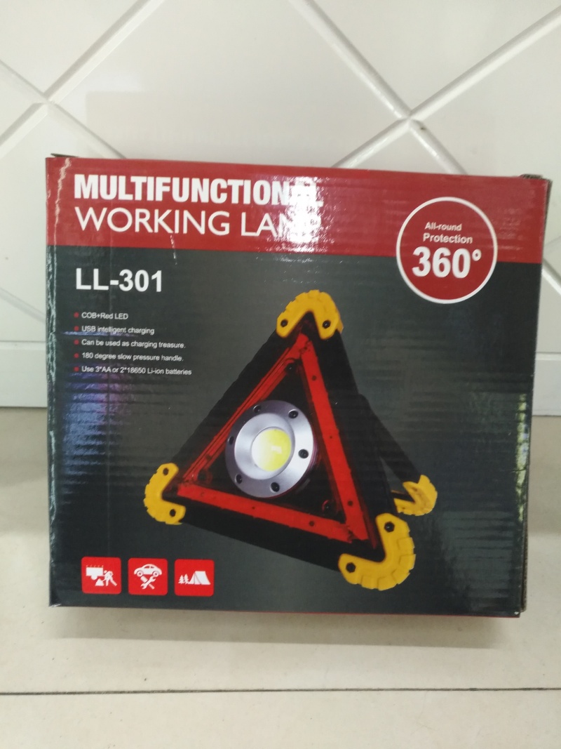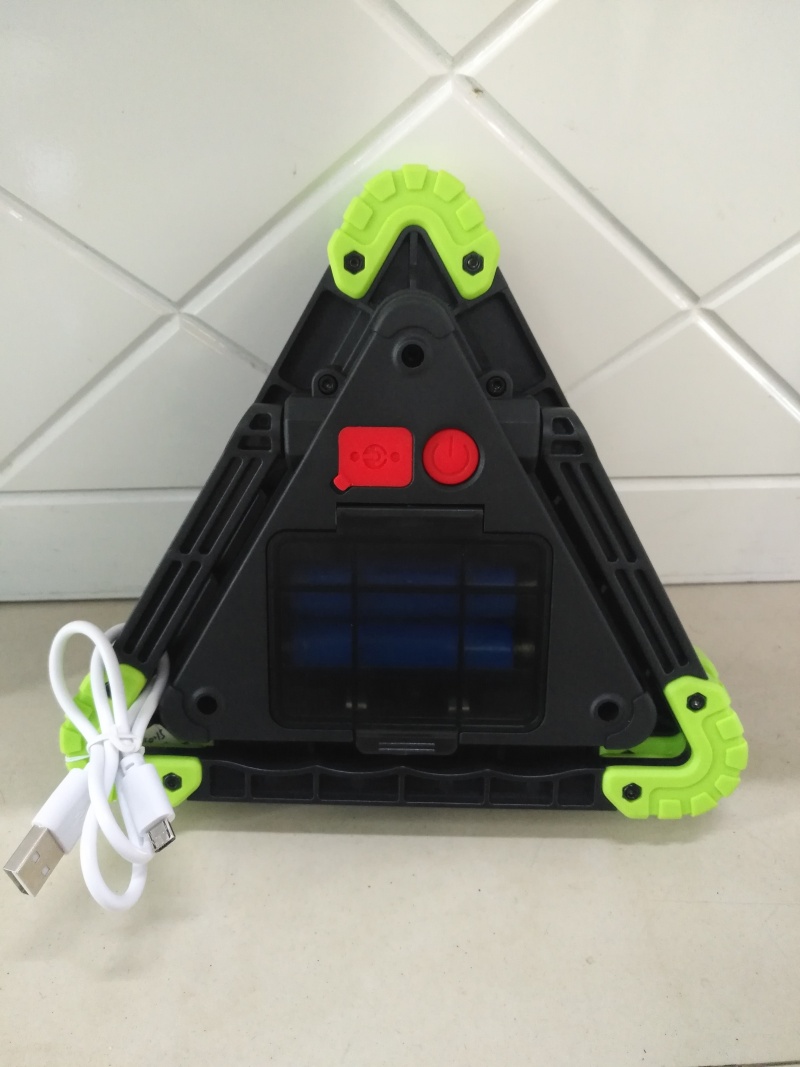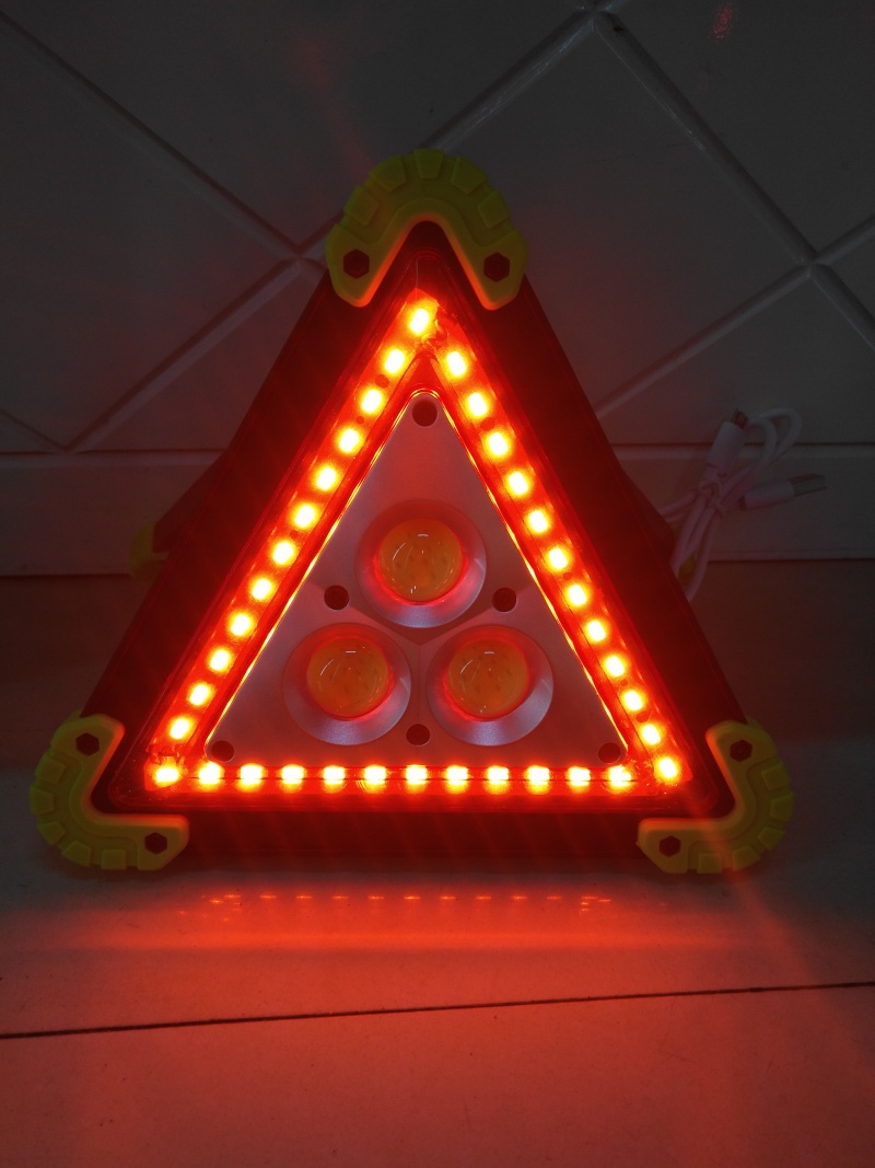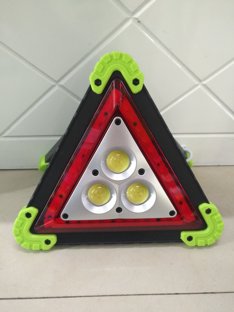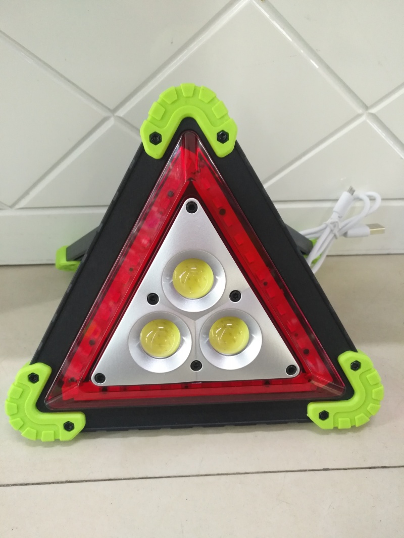 Hot-selling new working lamp, triangle warning lamp, parking lamp, roadblock lamp, rechargeable camping lamp, ABS material 3 COB patch headlights in the middle, 36 LED red lights in the outer ring, white light in the middle with strong light and weak light, red light and red flash in the outer ring, a total of 4 gear positions, equipped with 2 USB cables of 18650 rechargeable batteries, individual color box packaging 60 sets per box