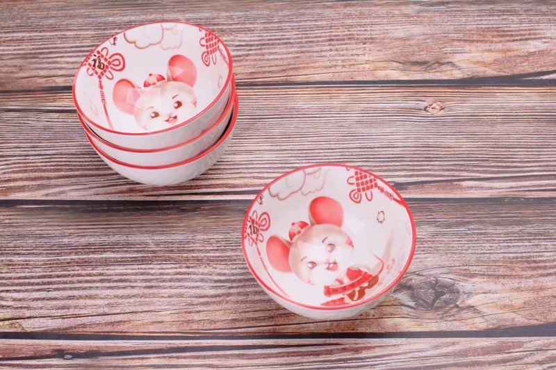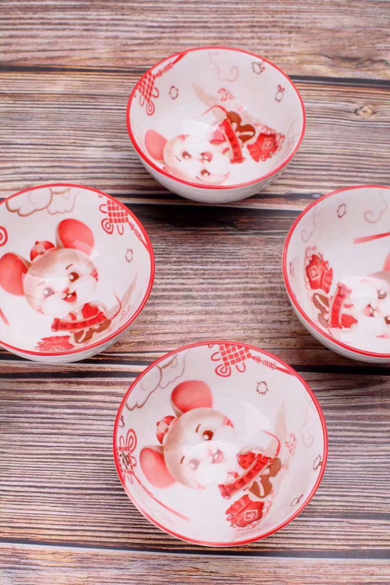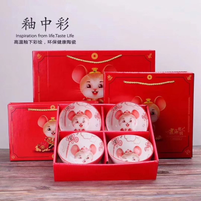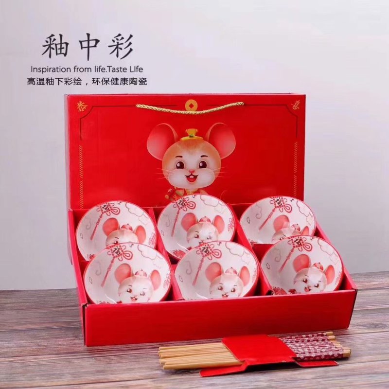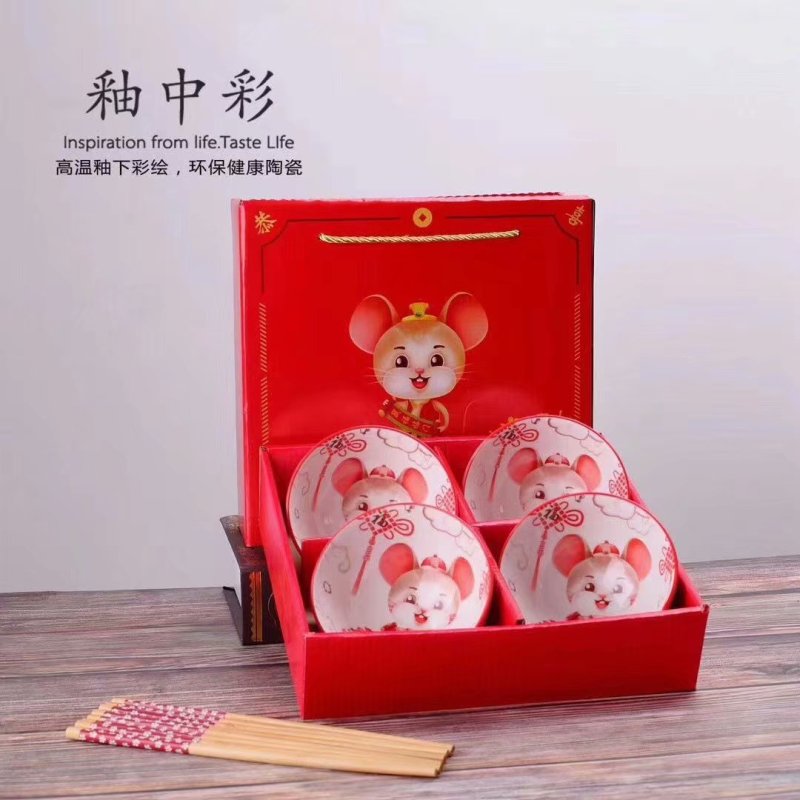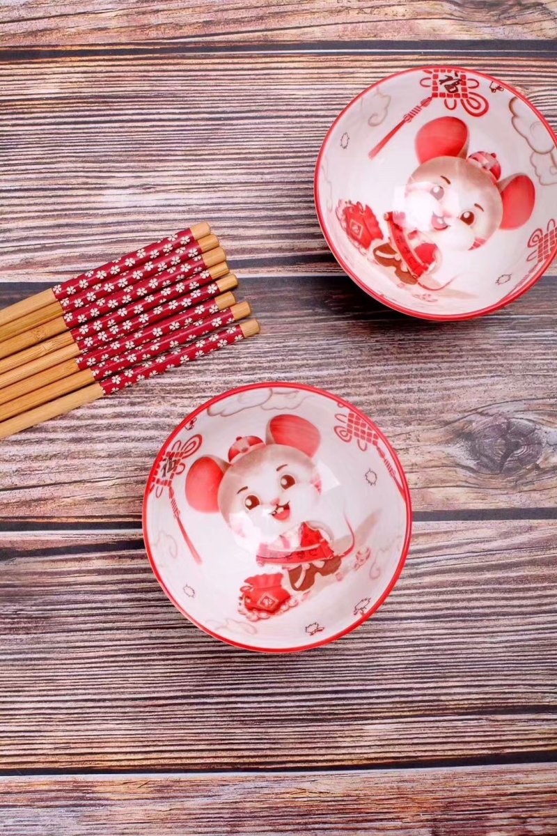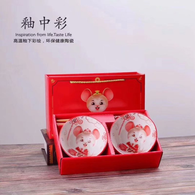 jingdezhen ceramic hot sale embossed colored glaze golden rat bowl and chopsticks set ceramic tableware wholesale creative gift