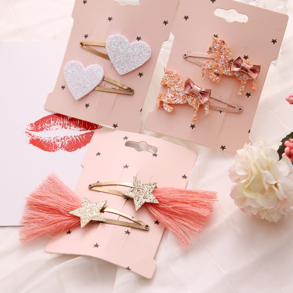 new hot sale children's exquisite hair accessories face powder barrettes a pair of hairclips sequins bb clip baby clip factory direct sales