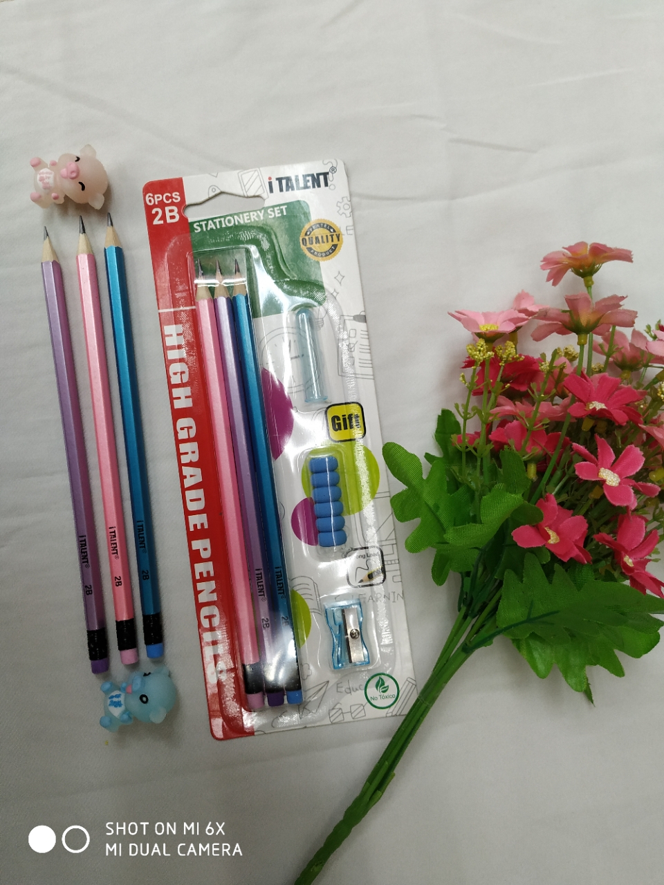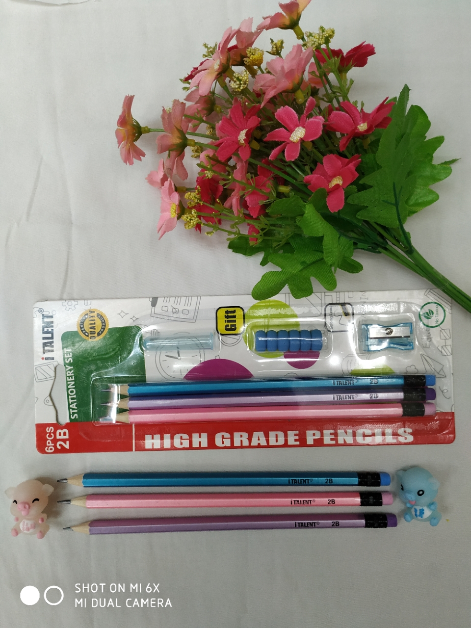 Macaron 2B pencil suction card packaging, 3+3 combination set, color rubber head, one card mix color match.