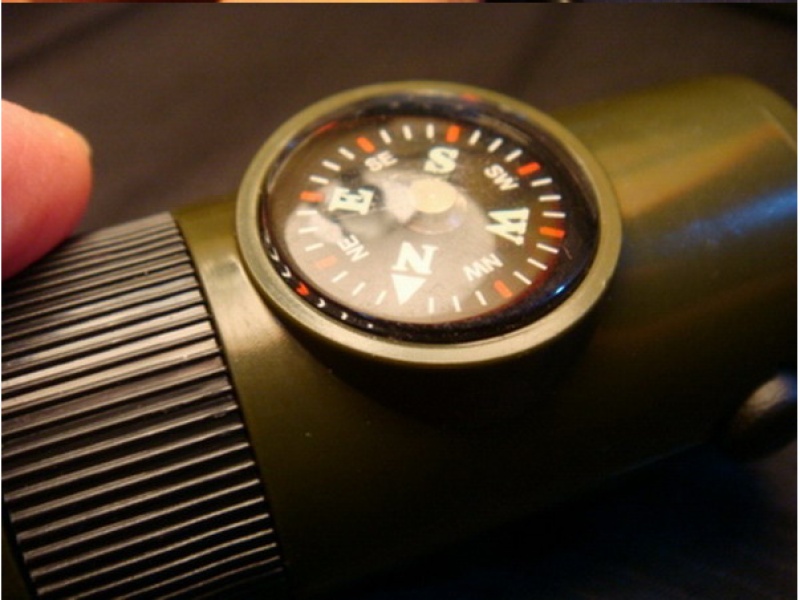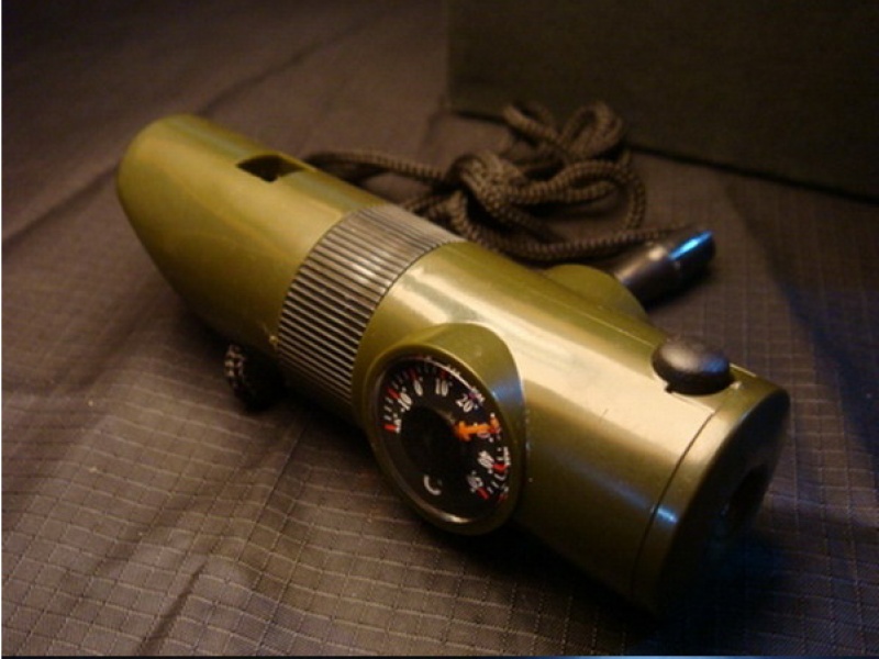 Functions: whistle, compass, thermometer, magnifying glass, mirror, LED light and other functions.