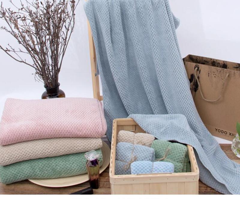 Superfine fiber adult beach towel 75*140 pinechecked jacquard coral nap absorbent towel