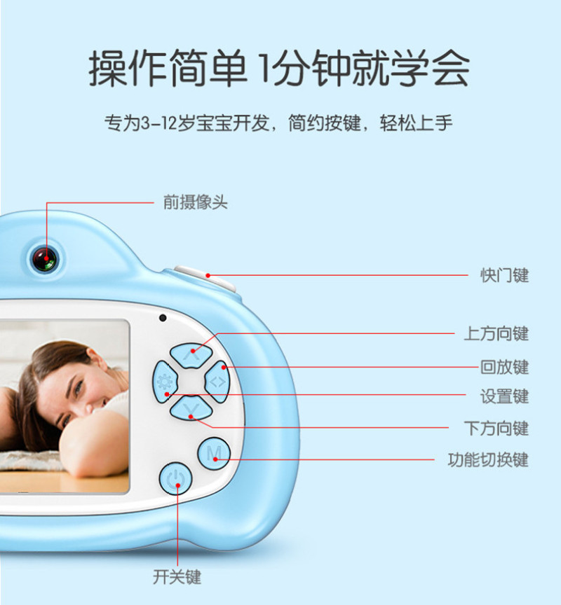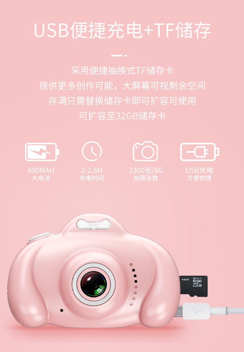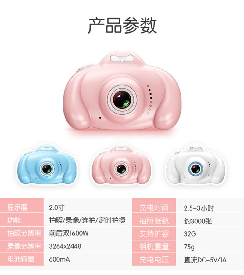 16 million pixels front and rear dual camera 2.0-inch screen cartoon white hd children's digital camera