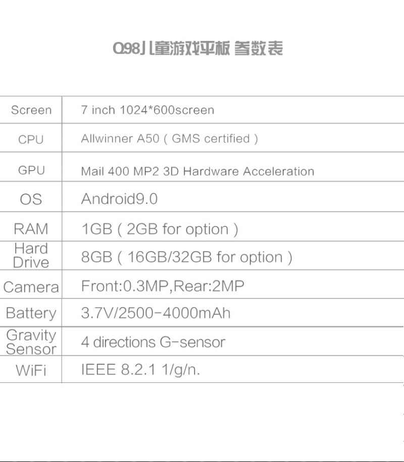 q98 children's tablet computer 7-inch wifi photo full hd screen 1+16 high configuration android 9.0 quad-core