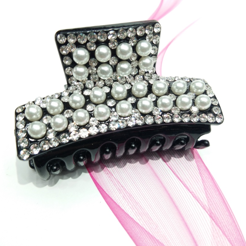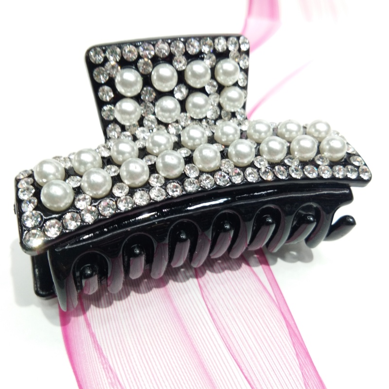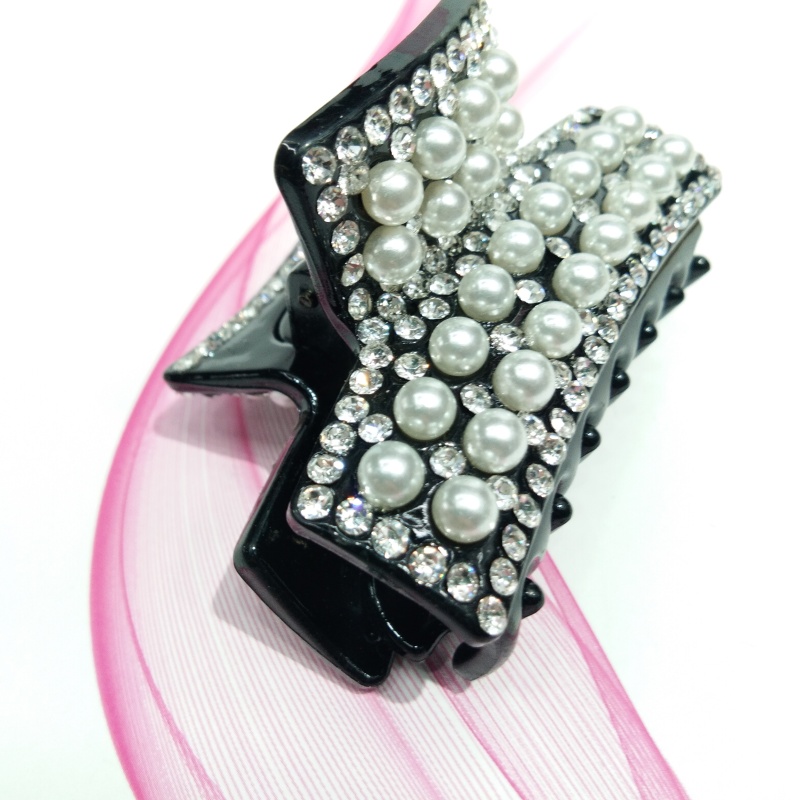 【Product Name】: Japanese and Korean Latest Trending Diamond-Set Crystal and Pearl Claw Clips