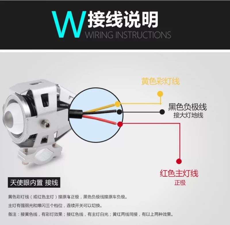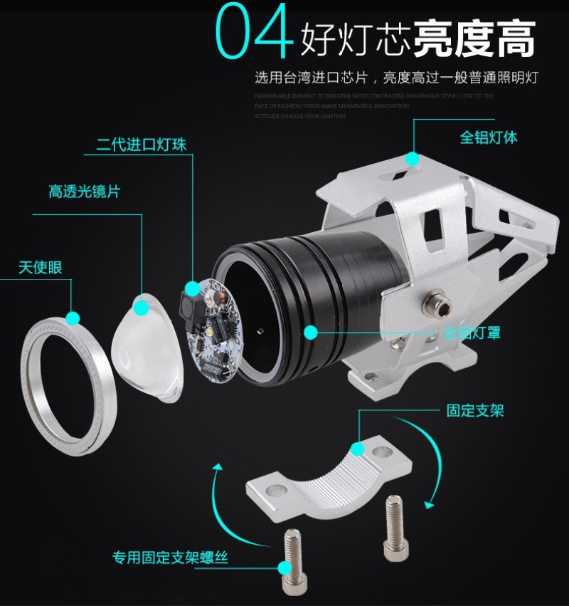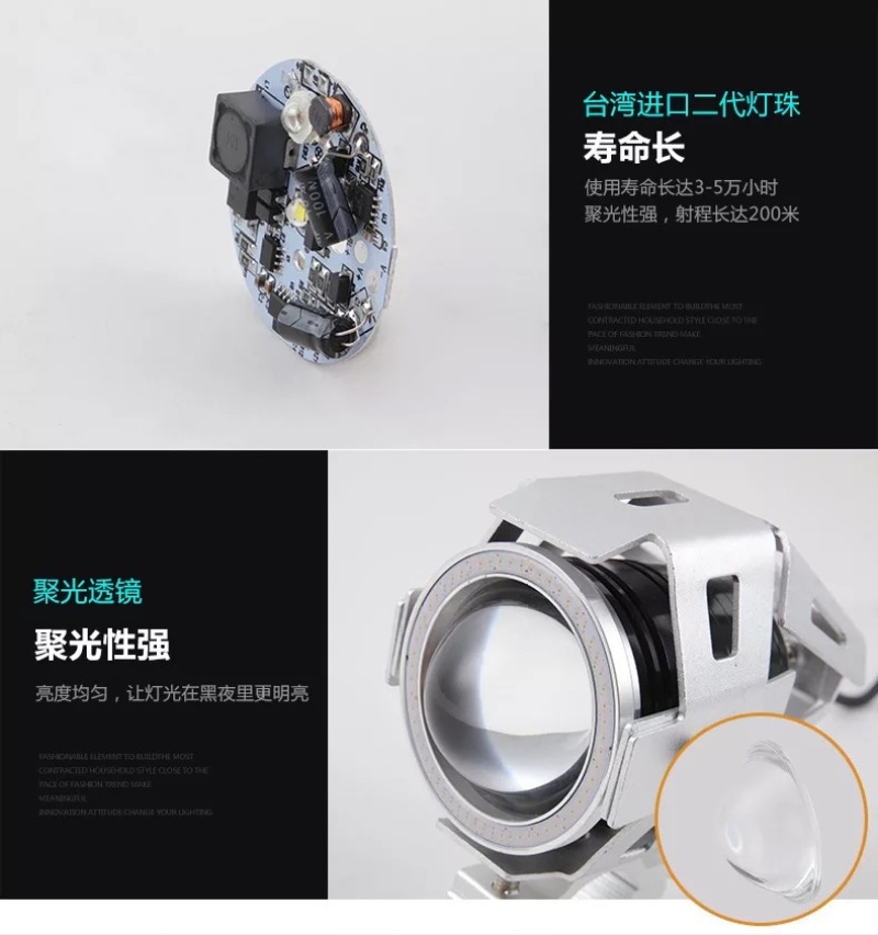 U7 Poly Lens Led Angel Eye Motorcycle Light Front Photo Modification Electric Scooter LED Headlight Exclusive for Cross-Border