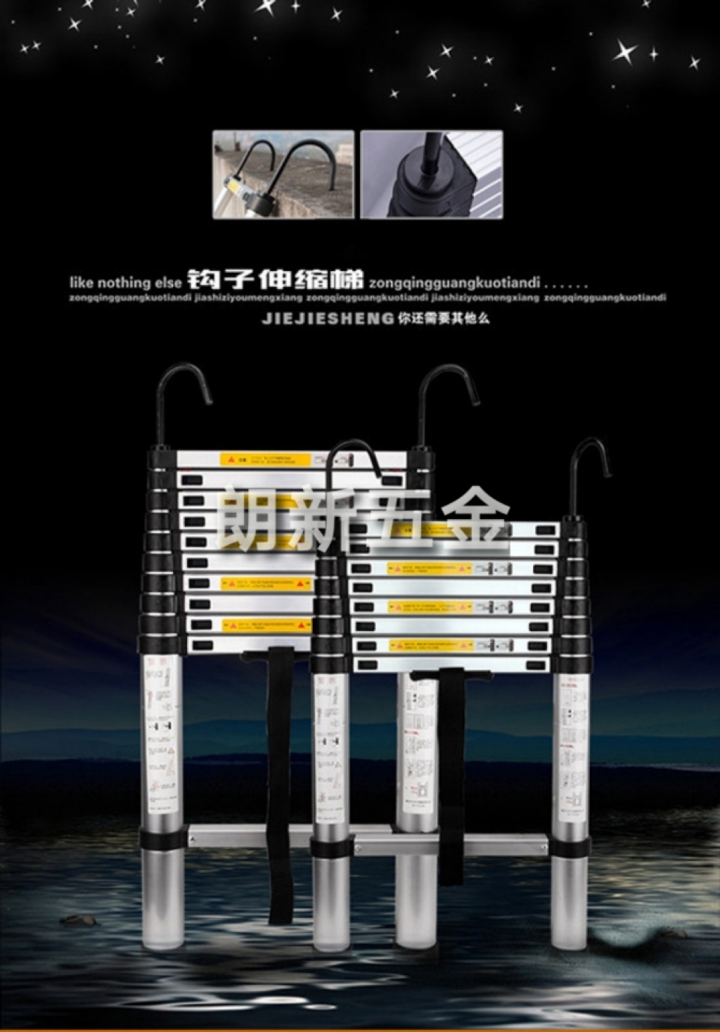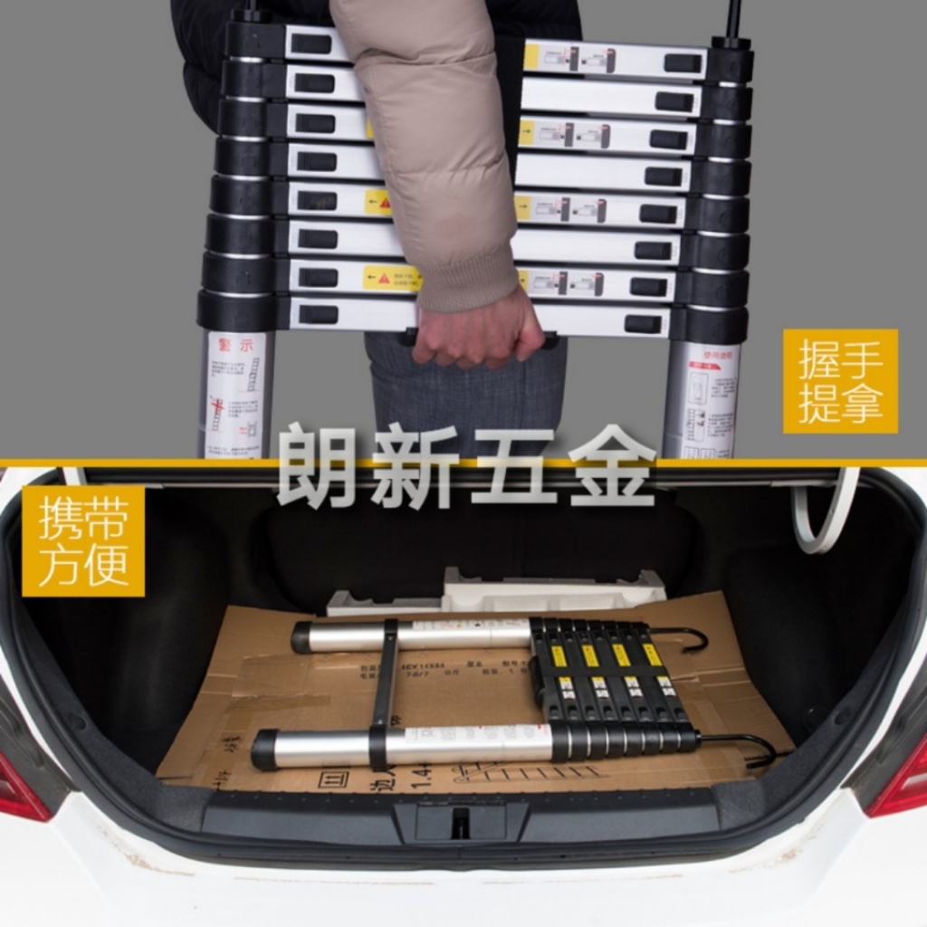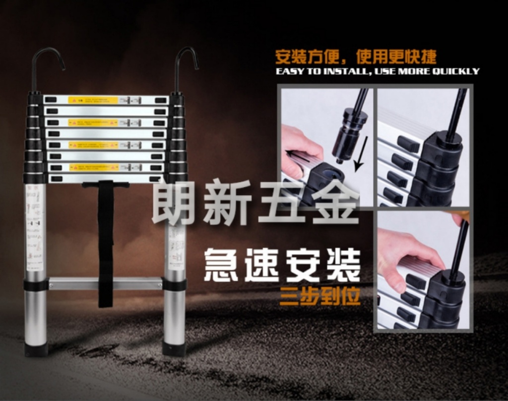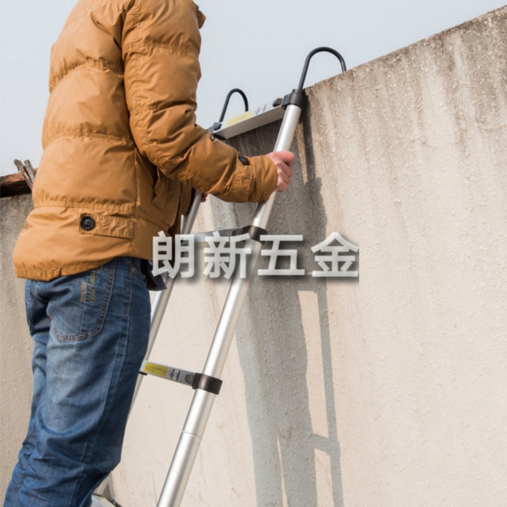 【Detailed Introduction】: The plastic parts of the ladder are finely crafted and aesthetically pleasing with clear patterns. The plastic parts are fixed with screws in the middle.Safety. The thickness of the plastic parts has been increased, nearly reaching half the thickness of a 1 yuan coin. The bearing capacity can support 300 jin. It can be used safely and confidently! The aluminum material is high-strength and thickened, with large bearing capacity. The aluminum material surface is treated with aluminum oxide. It is anti-static, corrosion-resistant, never rusts, and has a long service life. The plastic parts at the top of the ladder are protected by a kit, and they will not wear the internal plastic parts even if they are often used against the wall. There are two fixed screws under each crossbar. The stability and safety are better. There are two "push-up" red switches under each crossbar. As long as you push them up at the same time, the ladder can be contracted. There are friction fine lines on the red switch buttons. When pushing up, it will not slip. It is both safe and convenient. There are anti-skid grooves on the steps of each crossbar of the ladder, preventing slipping. The bottom of the ladder feet are all equipped with anti-skid plastic kits. The safety is very guaranteed. All ladders in our company are made of high-grade aluminum materials, with international CE quality safety certification (a photocopy can be provided if needed), so you can absolutely trust its use. No matter how high-grade the ladder is, it is inevitable that it will make people feel swaying when reaching a certain height, which may be impossible to overcome. Because the psychological effect of people at a certain height is also very great. All ladders of our company's direct sales have international CE safety certification, ensuring your safety and can be used confidently! The materials used for this product are high-strength aluminum alloy materials, which can support more than 150KG, with good safety performance, and are convenient to carry and store after contraction. It is widely used in family, industrial and mining enterprises, power departments for high-altitude operations and safety escape for passengers from the window of the railway car when the accident occurs, and can also be used in the anti-terrorism and anti-violence of public security departments, and the high-altitude rescue operations of fire fighting and fire fighting. It is a very practical ideal product.???