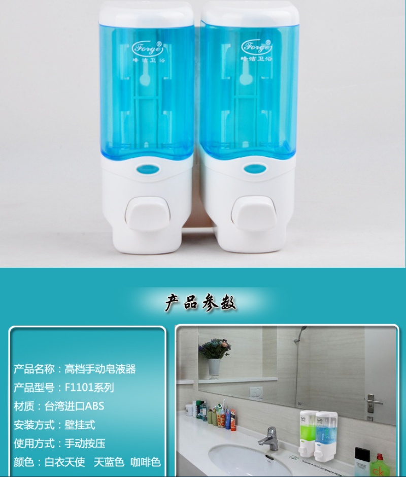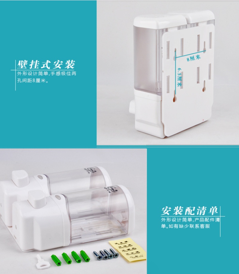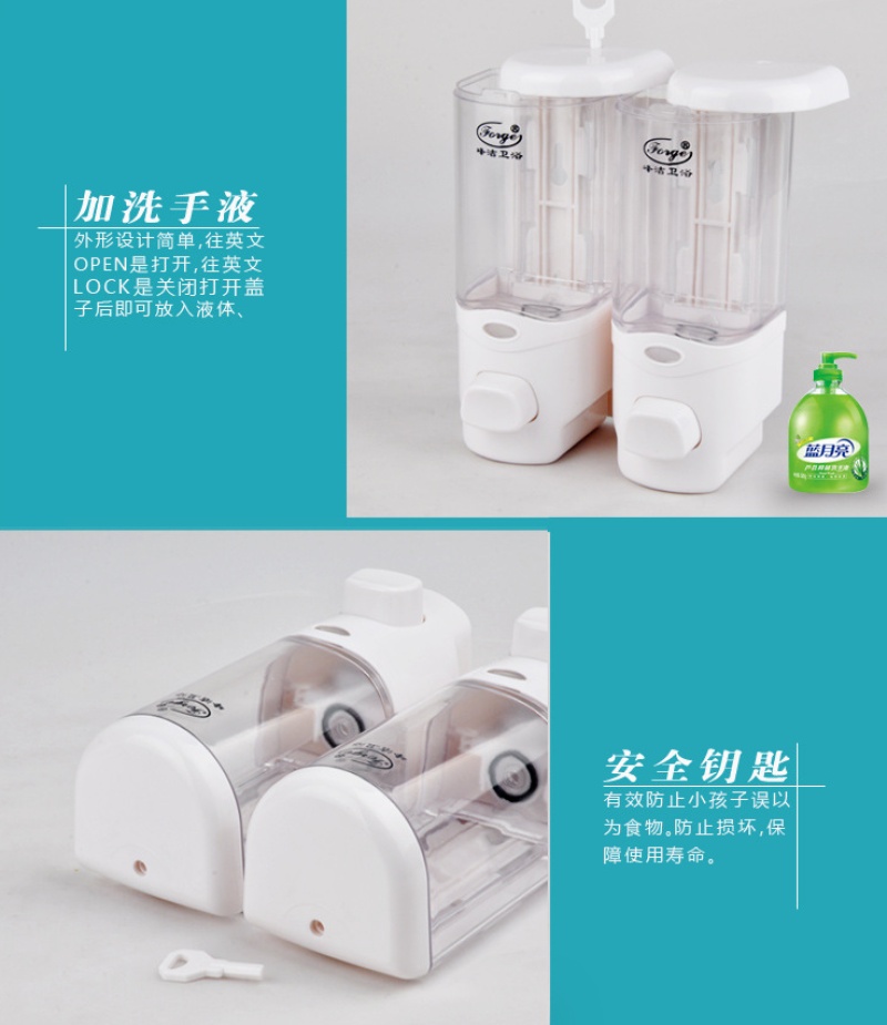 Hotel bathroom double head soap dispenser Hotel wall-mounted shampoo shower gel box hand dispenser two in one