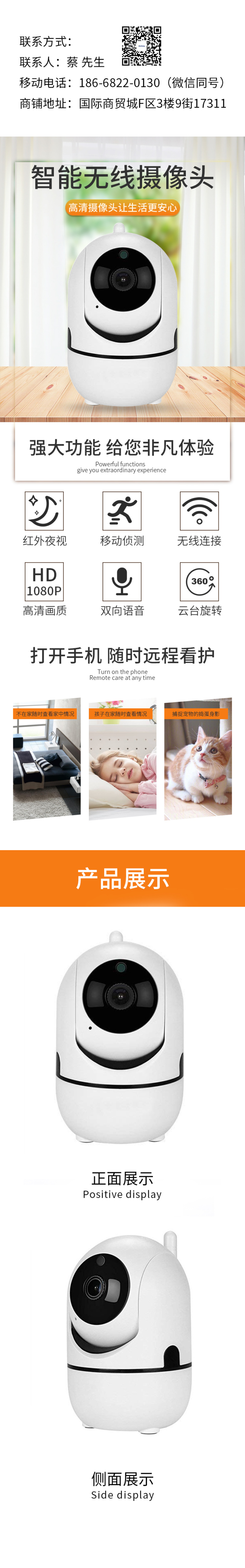 Smart wireless camera wifi network can connect mobile phone remote outdoor hd night vision home monitor